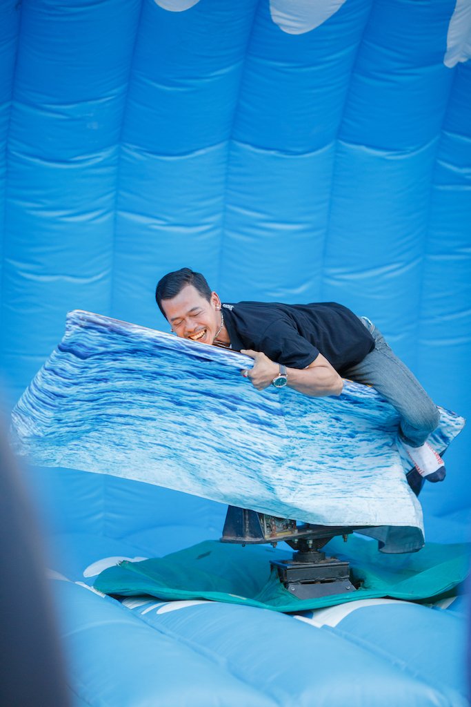 บูธ Surf Rider ให้ทุกคนได้ร่วมสนุกด้วยการแข่งขันกันว่าใครสามารถยืนอยู่บน Surf ได้นานที่สุด