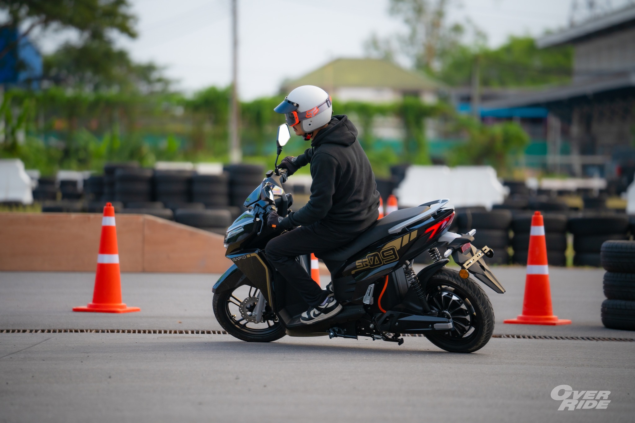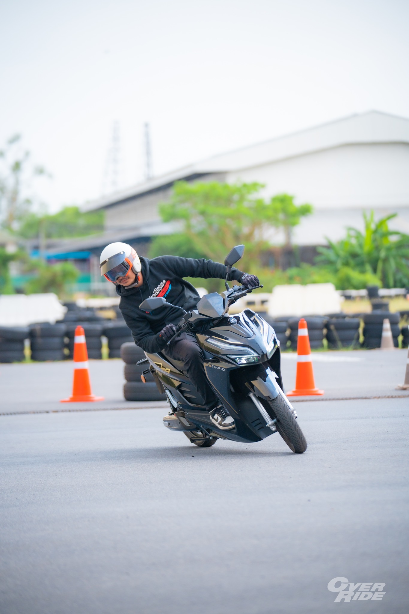 ส่วนการเข้าโค้งนั้นก็ทำได้ดี ไม่ล่อนหรือส่าย ท่านั่งการขับขี่ออกแบบมาให้กระชับรับกับสรีระคนไทยอย่างยิ่ง ถ้าใครชื่นชอบรถ