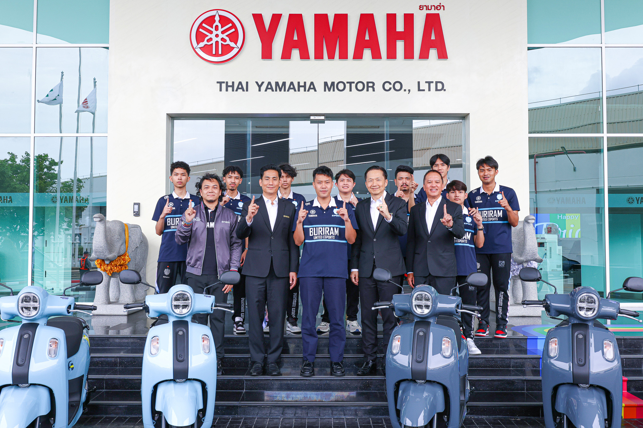 นายพงศธร เอื้อมงคลชัย ประธานกรรมการบริหาร นายภาณุพล กิตติคำรณ ผู้จัดการใหญ่ด้านการค้า นายอุกฤษณ์ ภาควิวรรธ รองผู้จัดการใหญ่ด้านการขาย และการตลาด นายจิรภัทร สายเพชร ผู้จัดการทั่วไปฝ่ายการตลาดกลุ่มรถออโตเมติก และสนับสนุนการตลาด บริษัท ไทยยามาฮ่ามอเตอร์ จำกัด ร่วมส่งมอบทัพรถจักรยานยนต์ยามาฮ่า FAZZIO เจนชีวิตได้ทุกสไตล์ จำนวน 10 คัน ให้กับนายโชติชนก ชิดชอบ ประธานเจ้าหน้าที่บริหาร บุรีรัมย์ ยูไนเต็ด อีสปอร์ต พร้อมด้วยทัพนักกีฬา Free Fire ที่มาร่วมรับรถจักรยานยนต์ยามาฮ่า FAZZIO ในครั้งนี้ โดยยามาฮ่าได้ร่วมเป็นส่วนหนึ่งในการผลักดันวงการกีฬาอีสปอร์ตของสโมสร บุรีรัมย์ ยูไนเต็ด อีสปอร์ต มาอย่างต่อเนื่องเป็นปีที่ 6 โดยทีมบุรีรัมย์ ยูไนเต็ด อีสปอร์ต สามารถสร้างชื่อเสียงให้กับประเทศไทย และสามารถคว้าแชมป์โลกจากการแข่งขันกีฬาอีสปอร์ตมาได้อย่างต่อเนื่อง