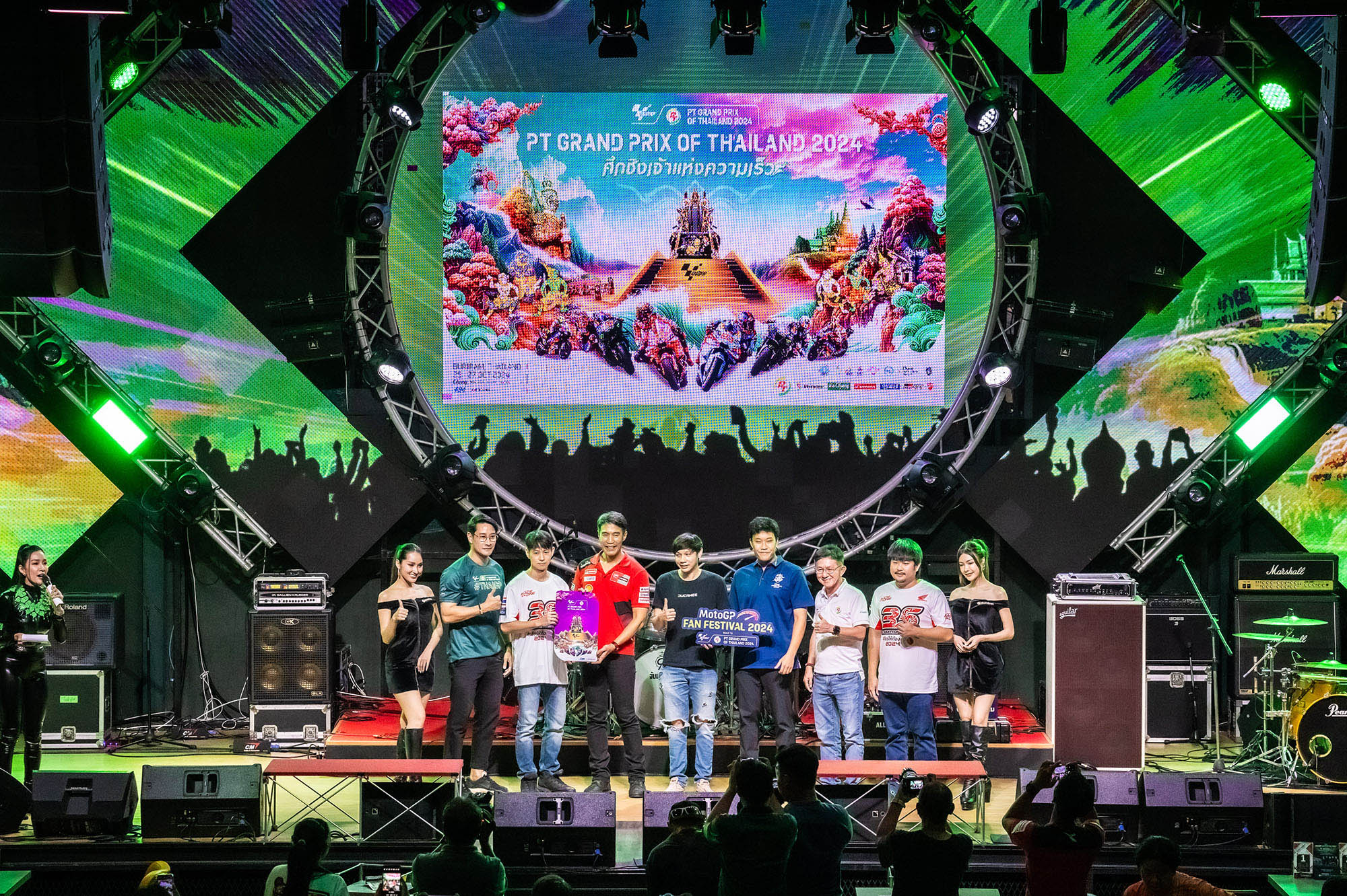บรรยากาศภายในงานมีกองทัพแฟนคลั บโมโตจีพีและสื่อมวลชน ร่วมงานมากกว่า 500 คน ร่วมชม-เชียร์ ร่วมลุ้นนักบิดที่ชื่นชอบกั บการแข่งขัน สนามที่ 12 อรากอน จีพี ประเทศสเปน พร้อมช่วยกันส่งเสียงเชียร์ นักบิดที่เป็นความภาคภูมิ ใจของชาวไทย “ก้อง”สมเกียรติ จันทรา และลุ้นรางวัลสุดเอ็กซ์คลูซีฟ ที่ส่งมอบประสบการณ์สุดล้ำค่ าให้กับแฟนคลับโมโตจีพี อาทิ บัตร Paddock สำหรับกระทบไหล่นักบิดดั งแบบใกล้ชิด, บัตร Pit Walk ที่ผู้ถือบัตรจะสามารถชมรถแข่ งมูลค่าหลายร้อยล้านและพิ ตการทำงานของทีมชื่อดังของโลก, ของที่ระลึก ThaiGP Collection ลิขสิทธิ์แท้และของรางวัลอื่ นๆมากมาย โดยมีคอนเสิร์ตจากศิลปินรุ่ นใหญ่ วงร็อกหัวดำ นำโดย ปู-อานนท์ สายแสงจันทร์ และวง BLACKHEAD ที่นำเพลงฮิตมากมายมาให้ฟังอย่ างจุใจ