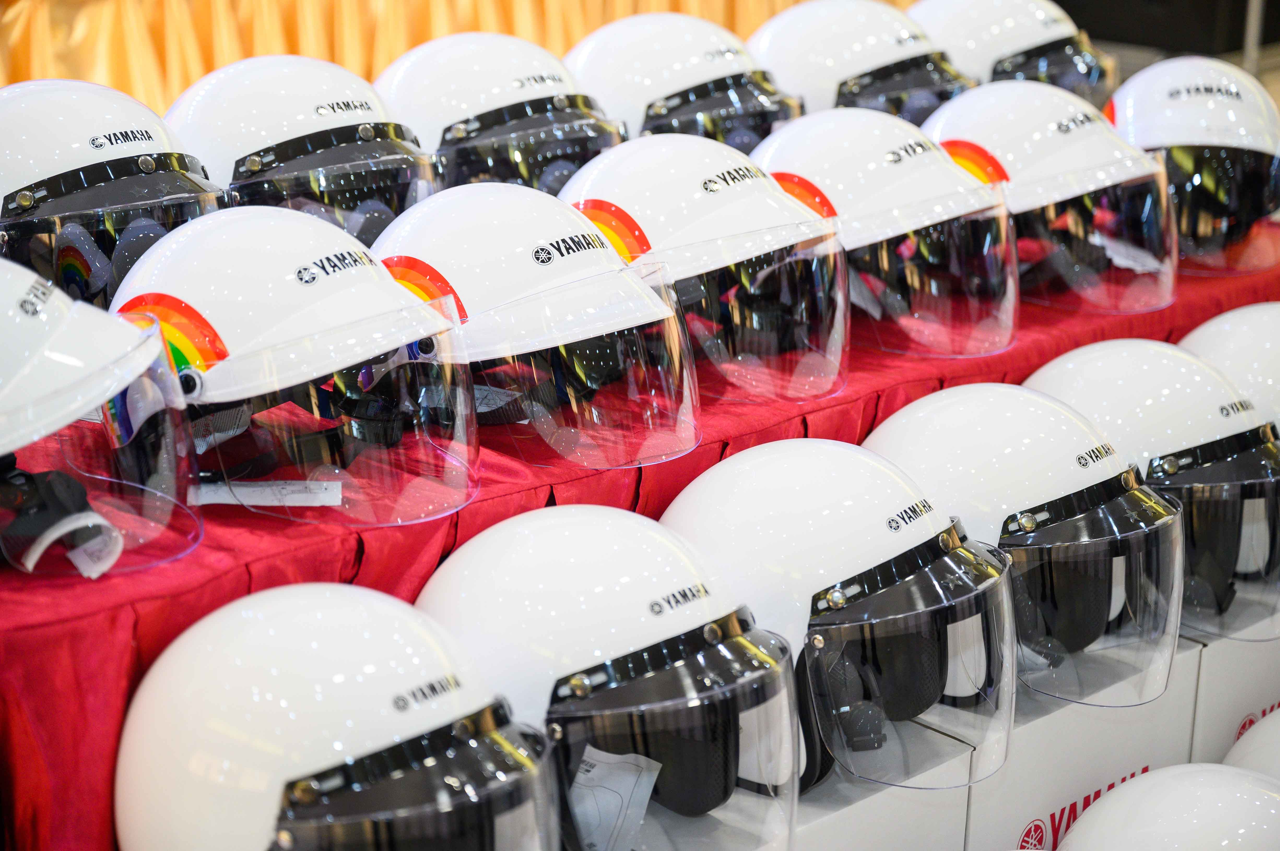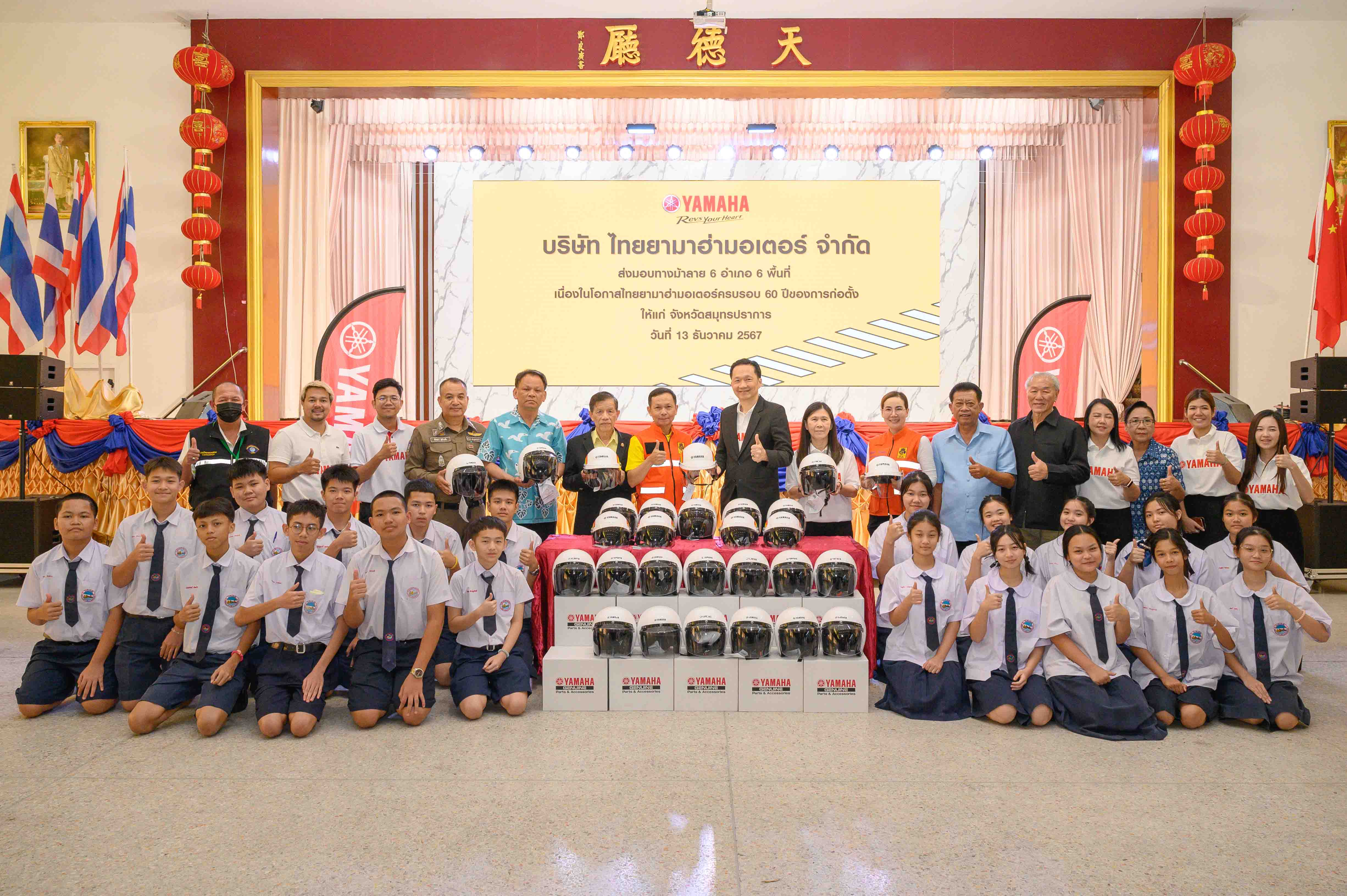 นายพงศธร เอื้อมงคลชัย ประธานกรรมการบริหาร นางสาวบัวทิพย์ จันทร์ดำรงกุล ผู้จัดการใหญ่ด้านการเงิน บริษัท ไทยยามาฮ่ามอเตอร์ จำกัด ถ่ายภาพร่วมกับนายศุภมิตร ชิณศรี ผู้ว่าราชการจังหวัดสมุทรปราการ พร้อมด้วย พ.ต.ท.พิทยา สุรินต๊ะ รองผู้กำกับการ จราจร สภ.สมุทรปราการ และคณะผู้บริหารโรงเรียนป้วยฮั้ว ร่วมกันรับมอบในการส่งมอบหมวกกันน็อกเด็กจำนวน 100 ใบ และหมวกกันน็อกขนาดมาตรฐานจำนวน 300 ใบ รวมมูลค่าทั้งสิ้นกว่า 245,000 บาท เนื่องในโอกาสฉลองครบรอบ 60 ปี ของบริษัท ไทยยามาฮ่ามอเตอร์ จำกัด จึงได้จัดทำโครงการผลิตหมวกนิรภัยขนาดเล็กที่ได้มาตรฐานผลิตภัณฑ์ อุตสาหกรรม (มอก.) เพื่อสังคม และนำส่งมอบทั่วประเทศมากกว่า 7,700 ใบ พร้อมการส่งมอบหมวกกันน็อกขนาดมาตรฐานเพื่อแจกจ่ายใหักับประชาชนในท้องที่ จ.สมุทรปราการ เนื่องในโอกาสปีใหม่ อีกด้วย
