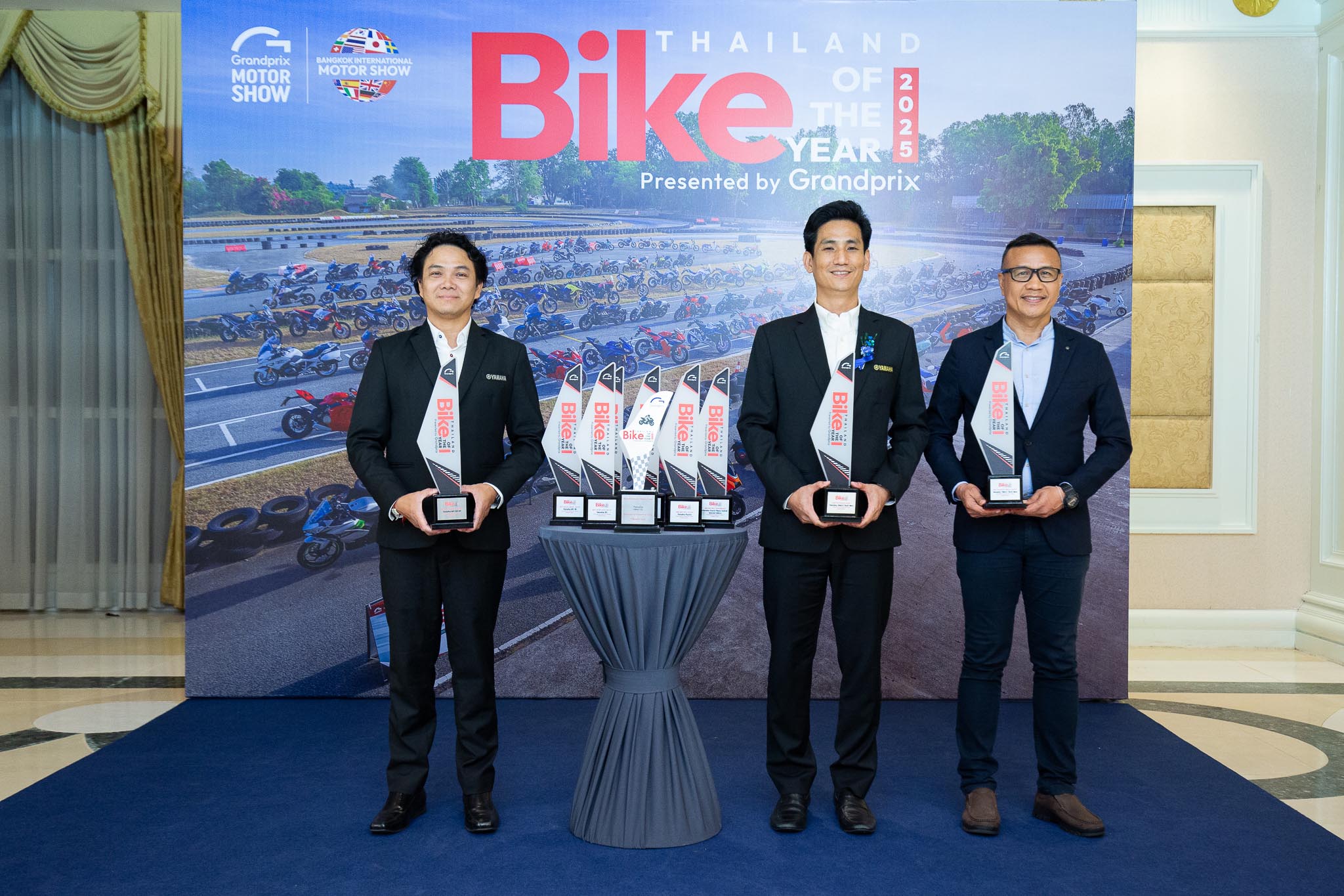 นายอุกฤษณ์ ภาควิวรรธ รองผู้จัดการใหญ่ด้านวางแผนการค้า และการตลาด และนายจิรภัทร สายเพชร ผู้จัดการทั่วไปส่วนสื่อสารการตลาดและส่งเสริมการตลาด นายพนา แดนแก้วมูล ผู้จัดการกลุ่มงานขาย และการตลาดรถบิ๊กไบค์ บริษัท ไทยยามาฮ่ามอเตอร์ จำกัด ขึ้นรับรางวัล และถ่ายภาพร่วมกับ นายพงศ์พล ยอดเมืองเจริญ เลขานุการรัฐมนตรีว่าการกระทรวงอุตสาหกรรม ประธานในพิธี ดร.ปราจิน เอี่ยมลำเนา ประธานจัดงานมอเตอร์โชว์ นายจาตุรนต์ โกมลมิศร์ รองประธานจัดงานมอเตอร์โชว์ / ประธานเจ้าหน้าที่ปฎิบัติการ สายกิจกรรมพิเศษ นายอโณทัย เอี่ยมลำเนา กรรมการบริหาร ประธานการจัดงาน Car & Bike of the Year นายพีระพงศ์ เอี่ยมลำเนา รองประธานการจัดงาน Car & Bike of the Year 2025 โดย บริษัท กรังด์ปรีซ์ อินเตอร์เนชั่นแนล จำกัด (มหาชน) ในการประกาศรางวัล Thailand Car & Bike of The Year 2025