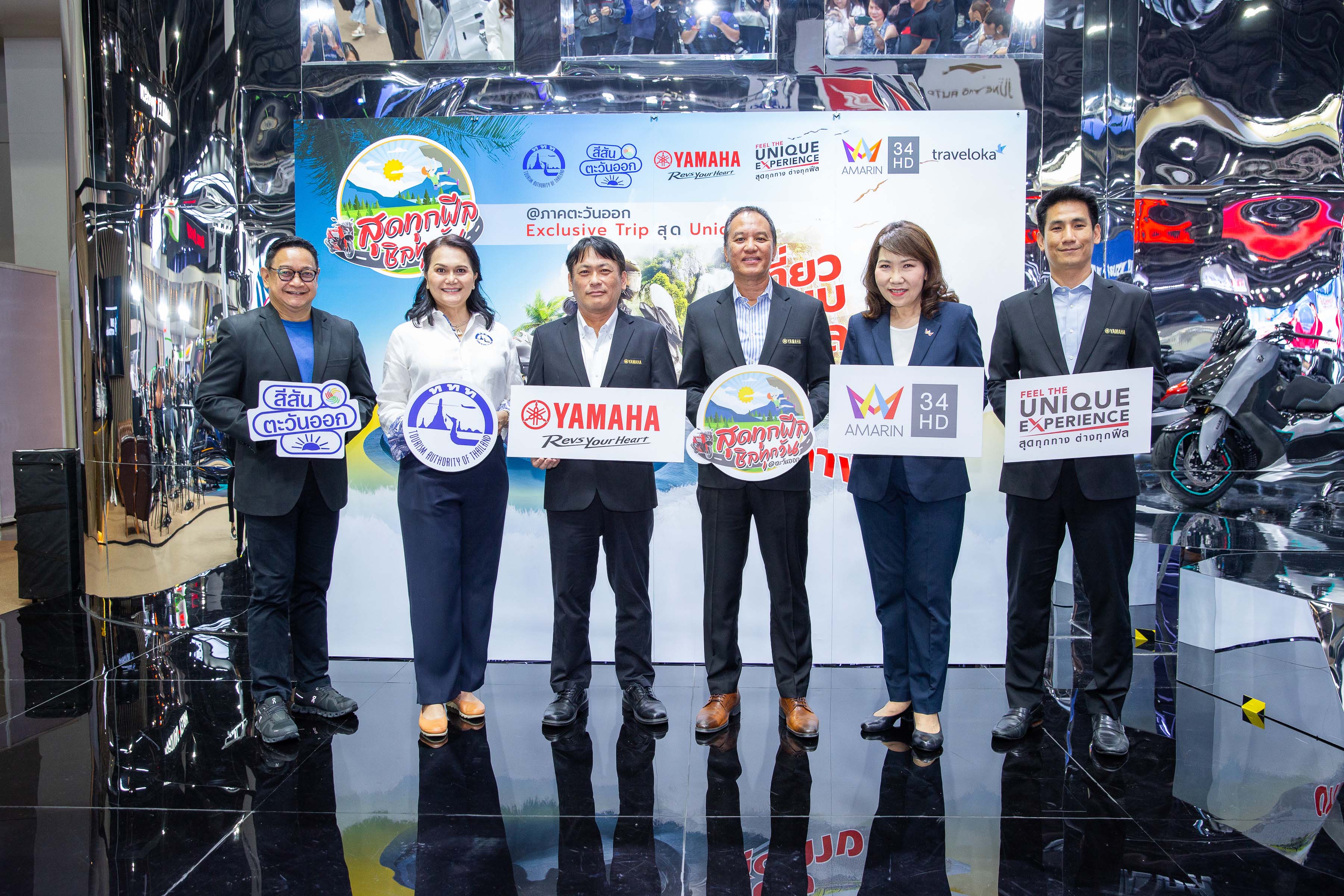 มร.ฮิเดฮิโกะ ทาคากิ รองประธานกรรมการบริหาร นายภาณุพล กิตติคำรณ ผู้จัดการใหญ่ด้านการค้า นายอุกฤษณ์ ภาควิวรรธ รองผู้จัดการใหญ่ด้านวางแผนการค้า และการตลาด บริษัท ไทยยามาฮ่ามอเตอร์ จำกัด ถ่ายภาพร่วมกับ นางกนกกิตติกา ผู้อำนวยการภูมิภาคภาคตะวันออก การท่องเที่ยวแห่งประเทศไทย (ททท.) และนางสาวธนสร จิรายุวัฒนา รองกรรมการผู้จัดการใหญ่ บริษัท อัมรินทร์ เทเลวิชั่น จำกัด ในงานแถลงข่าวเปิดตัวแคมเปญ สุดทุกฟีล...ชิลทุกวัน@ภาคตะวันออก โดยทางการท่องเที่ยวแห่งประเทศไทย และ อัมรินทร์ทีวี ร่วมจับมือผุดแคมเปญเพื่อกระตุ้นการท่องเที่ยว พร้อมเปิดประสบการณ์ใหม่ในแบบ 5 MUST DO IN THAILAND