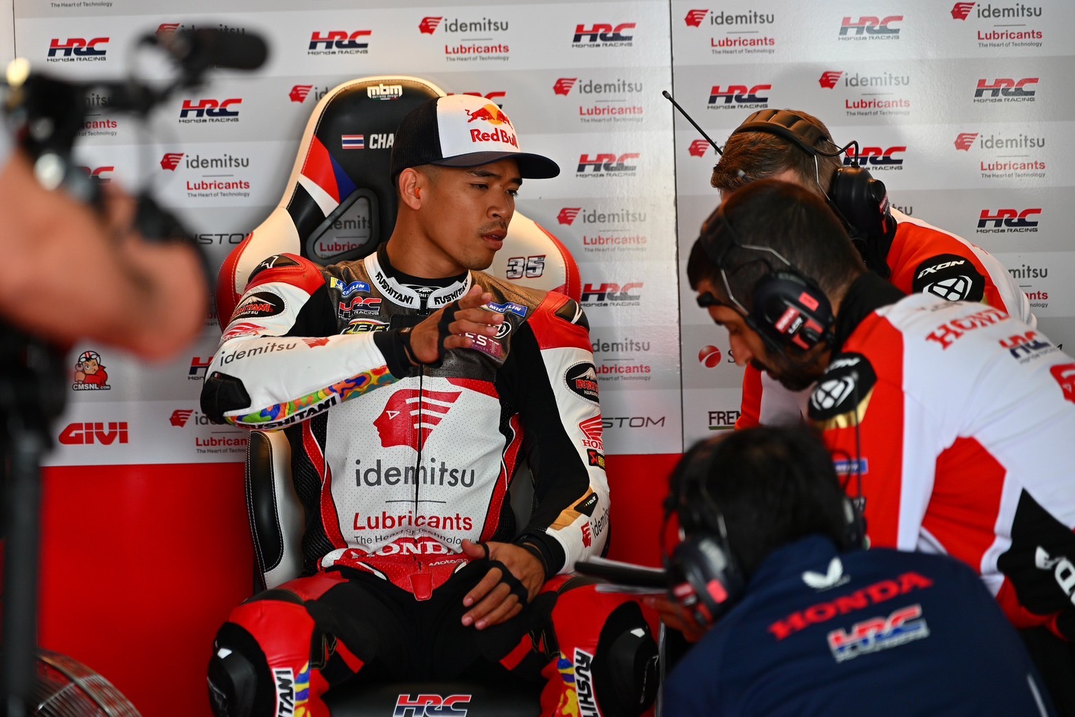 ขณะที่ "ก้อง-สมเกียรติ" นักบิดไทยเจ้าของหมายเลข 35 จาก อิเดมิตสึ ฮอนด้า แอลซีอาร์ เดินหน้ายกระดับการทำงานอย่างต่อเนื่องกับทีม โดยในวันแรกสามารถค้นหาเซ็ตอัพที่ลงตัวมากขึ้น แต่น่าเสียดายที่โดน "ธงเหลือง" รบกวนจนไม่สามารถกดเวลาต่อรอบในช่วงท้ายได้ รั้งอันดับ 23 ด้วยเวลา 1 นาที 38.004 วินาที