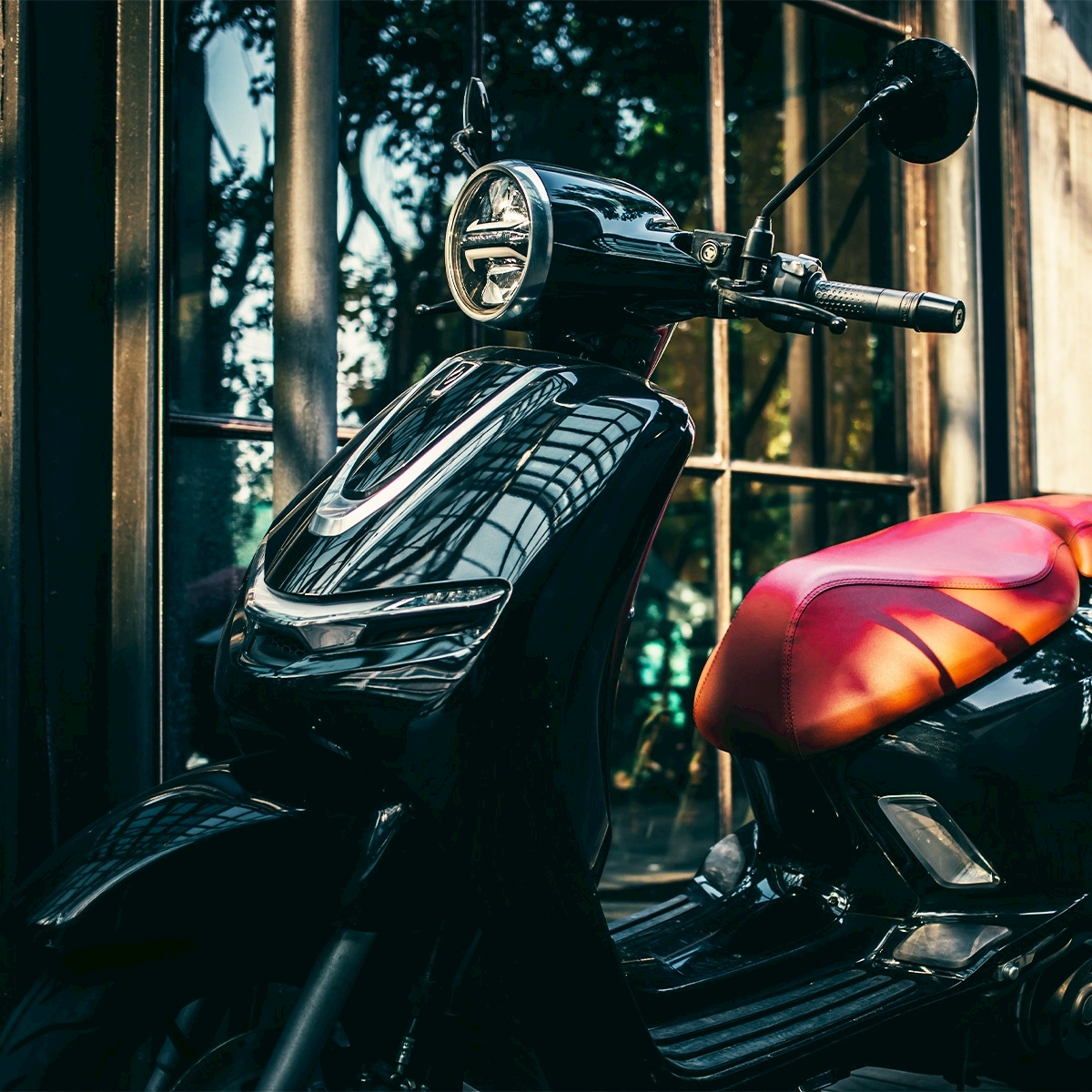 พรีเมียมสกู๊ตเตอร์ดีไซน์สปอร์ต ด้วยเส้นสายการออกแบบที่เฉียบคม ผสานความหรูหรา และความสวย เท่ในคันเดียว ตัดกับเบาะหนังสีแดงสะดุดตาที่สะท้อนตัวตนของคนยุคใหม่อย่างแท้จริง
