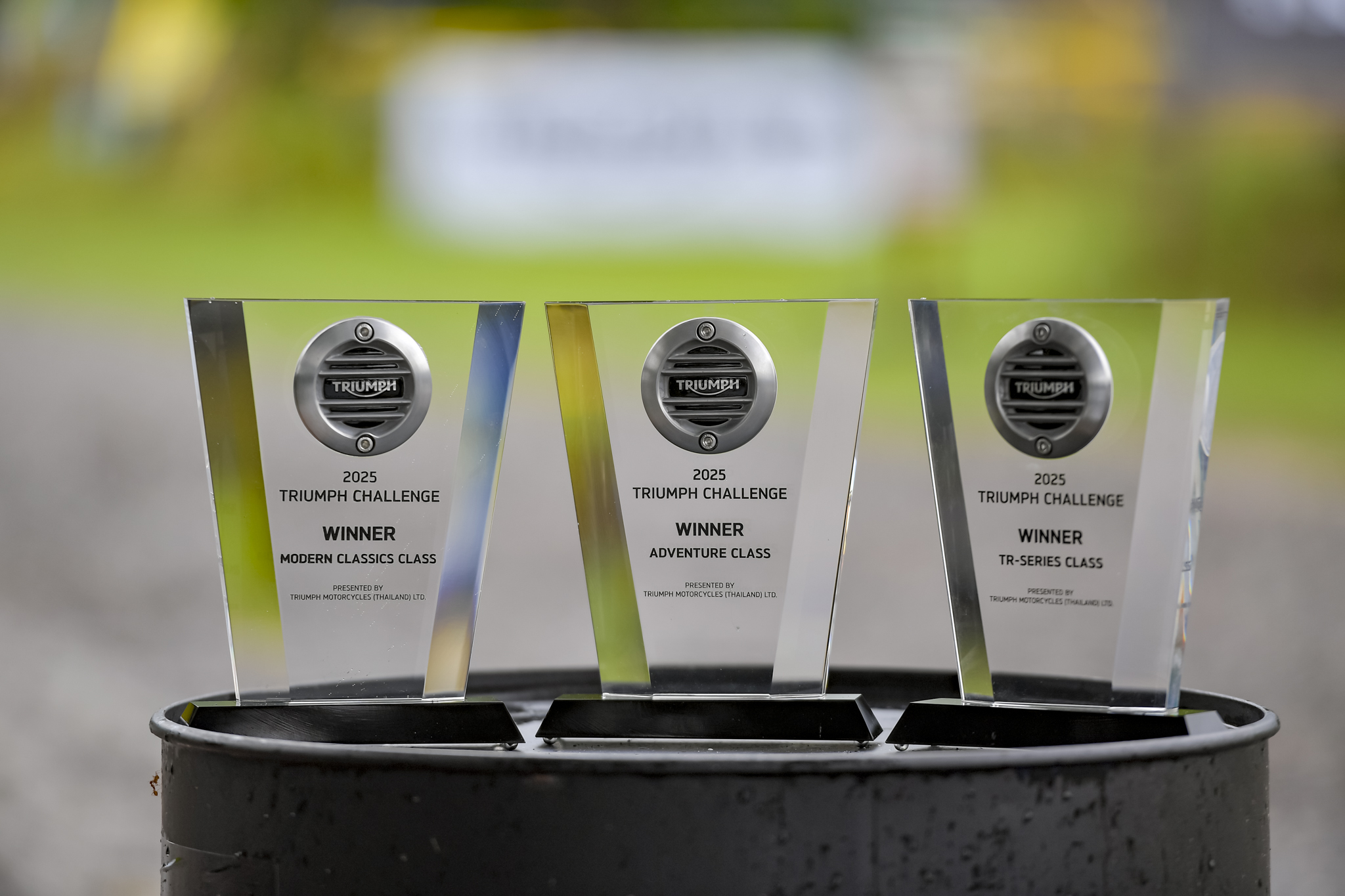 ตลอดระยะเวลาการแข่งขันแสนท้าทายตั้งแต่เช้าจรดเย็น การชิงชัยสุดเดือดทั้ง 3 ประเภทก็ได้ผู้ชนะที่คว้ารางวัล Triumph Challenge 2025 ไปครองอย่างยิ่งใหญ่ โดยในกลุ่ม TR-Series ผู้ชนะเลิศ ได้แก่ คุณชัยวัฒน์ ชูเกียรติวัฒนกุล และรองชนะเลิศ ได้แก่ คุณสมศักดิ์ แสงเรืองเอก ซึ่งทั้งคู่ขับขี่รถไทรอัมพ์คู่ใจในรุ่น Scrambler 400 X ส่วนกลุ่ม Modern Classics ผู้ชนะเลิศ ได้แก่ คุณพิศาล พวงทอง ที่ขับขี่ Scrambler 900 ด้านรองชนะเลิศ ได้แก่ คุณณัฐ บุศราทิจ ที่ขับขี่ Bonneville T100 ปิดท้ายในกลุ่ม Adventure ผู้ที่คว้ารางวัลชนะเลิศ ได้แก่ คุณปริญญา สมใจ ที่ขับขี่ไทรอัมพ์ Tiger 800 คว้าชัยไปครองได้อย่างสวยงาม ส่วนรองชนะเลิศ ได้แก่ คุณเจริญพูนน้อย ที่ขับขี่พี่เสือรุ่นใหญ่ Tiger 1200 ลงท้าชิงสุดมันส์