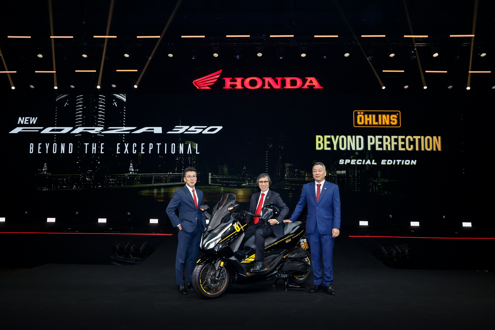 และอีกหนึ่งไฮไลต์สำคัญอย่างรถจักรยานยนต์ ‘New Honda Forza 350 Special Edition x Öhlins’ เปิดตัวภายใต้คอนเซปต์ ‘BEYOND PERFECTION ก้าวข้ามความสมบูรณ์แบบที่เหนือระดับ’ ที่ได้ร่วมมือกับ Öhlins แบรนด์ผู้นำด้านเทคโนโลยีช่วงล่างระดับโลก มาพร้อมชุดโช้กอัพ Öhlins Special Edition รองรับทุกจังหวะการขับขี่ด้วยความนุ่ม หนึบ และมั่นใจทุกทางโค้ง ด้วยดีไซน์สีทองอันเป็นเอกลักษณ์ โดดเด่นด้วยหัวโช้คดีไซน์ใหม่ที่ทันสมัย และสติ๊กเกอร์ Blue Logo สะดุดตา รวมถึงตัวปรับโช้ค Gold Compression Adjuster ที่ปรับแต่งได้ละเอียดและโดดเด่นไม่เหมือนใคร และฝาท้ายโช้ค Gold End Cap ที่เติมเต็มความหรูหราอย่างสมบูรณ์แบบ