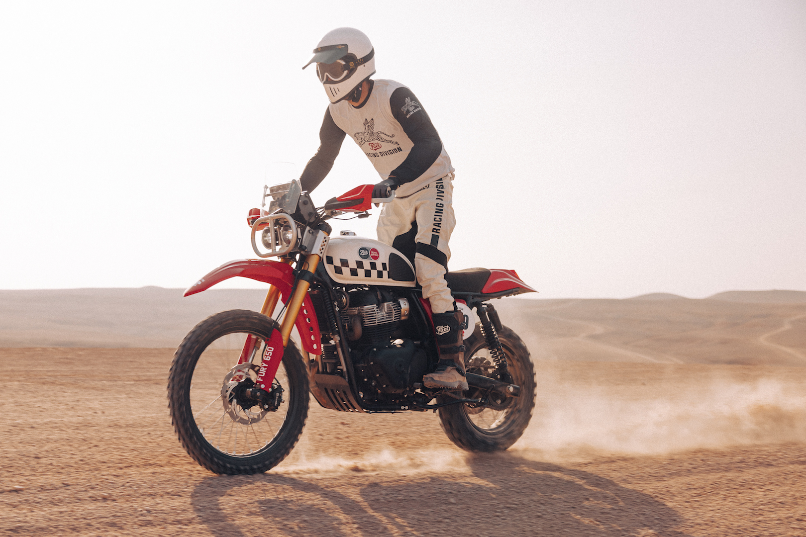 และรถคันสุดท้ายคือ FURY 650 สร้างสรรค์โดย Fuel แบรนด์ไลฟ์สไตล์จากบาร์เซโลนาที่โด่งดังจาก Scramblers และ Cafe Racers ที่เป็นเอกลักษณ์ Karles Vives ผู้ก่อตั้งและผู้อำนวยการฝ่ายสร้างสรรค์ของ Fuel Motorcycles ได้รับแรงบันดาลใจในการผลักดัน Royal Enfield Bear 650 ใหม่ ให้ถึงขีดจำกัดของศักยภาพ Off-Road ด้วยความหลงใหลในการผจญภัยที่เต็มเปี่ยม โปรเจกต์นี้เพื่อเป็นเกียรติแก่ Eddie Mulder แชมป์การแข่งขัน Big Bear Run ในตำนานปี 1960 และสร้างรถที่สามารถพิชิตทะเลทรายได้เหมือนกับรถที่ใช้แข่ง Baja 1000 ในยุค 90s สมรรถนะคือสิ่งสำคัญสูงสุด โดยเฉพาะอย่างยิ่งในสภาพ Off-Road ทำให้ Fuel อัปเกรดส่วนสำคัญต่างๆ เช่น ล้อหน้าขนาด 21 นิ้ว, ระบบกันสะเทือนที่ระยะยุบยาวขึ้น, ระบบนำทาง และไฟหน้าคู่FURY 650 ใช้ Royal Enfield Bear 650 เป็นพื้นฐาน ล้อหน้าเปลี่ยนเป็น 21 นิ้ว พร้อมยาง Mitas Dakar 6 ส่วนล้อหลัง 17 นิ้ว