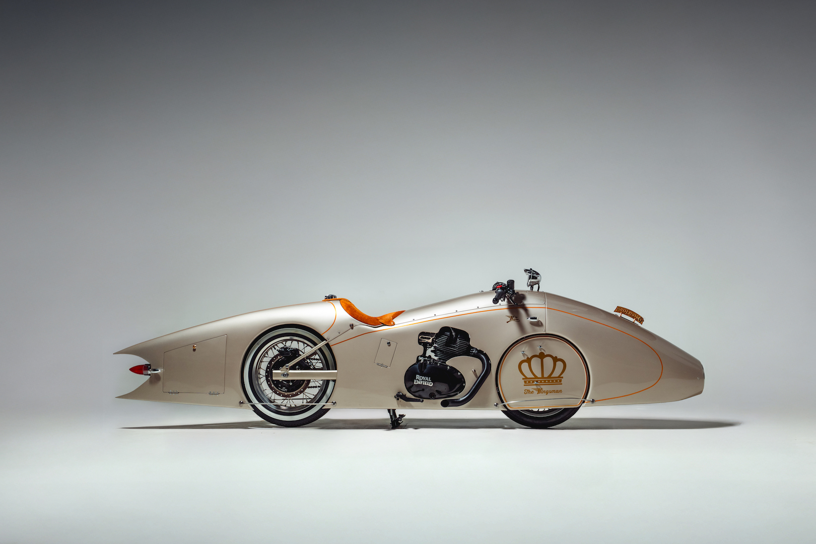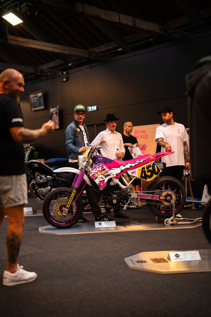 หนึ่งในไฮไลท์ที่สร้างความฮือฮาคือ The Kingsman นอกจากชื่อสุดเท่ที่คุ้นหูกันแล้ว ยังเป็นรถมอเตอร์ไซค์ที่ได้รับการรังสรรค์และสร้างด้วยมือโดยศิลปินชื่อดังอย่าง Dirk Oehlerking จาก Kingston Custom สตูดิโอในภูมิภาค Ruhr ของเยอรมนี ซึ่งเคยเป็นที่รู้จักในนาม ‘City of a Thousand Fires’ เพราะเป็นแหล่งที่ตั้งโรงงานเหล็กจำนวนมาก สมกับเป็นบ้านของศิลปินที่มีความสามารถในการสร้างสรรค์ด้วยตนเองในโรงหล่อเก่า The Kingsman ถือกำเนิดขึ้นในการแข่งขัน 'Custom Build Challenge' ที่งาน Art of Machine ใน Malle Mile ปี 2024 โดยพวกเขาได้สร้างและแข่งมอเตอร์ไซค์ Malle Custom สุดยอดเยี่ยมจนได้รับรางวัล ทำให้ได้รับรถ Royal Enfield Shotgun และงบประมาณในการสร้างรถคัสตอมสำหรับงาน Wheels & Waves 2025