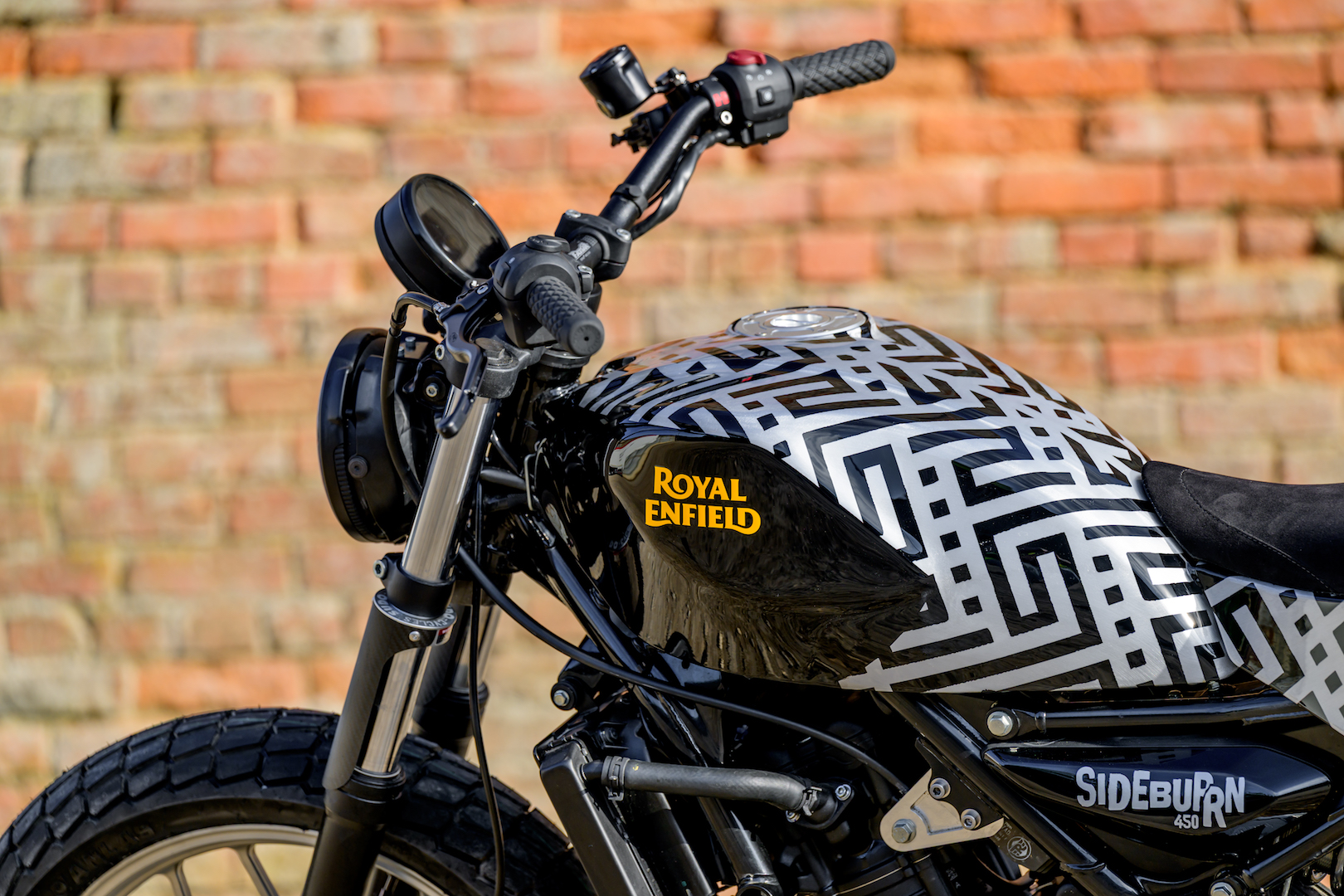 อีกหนึ่งผลงานที่น่าสนใจคือ MODERN PRIMITIVE ซึ่งเป็นหนึ่งในรถคัสตอมแรก ๆ ที่ใช้ Guerrilla 450 ตัวใหม่ โดยเป็นผลงานการสร้างสรรค์ของ Sideburn Magazine นิตยสารการแข่งขัน Flat Track มาตั้งแต่ปี 2008 และเป็นที่รู้จักจากการสร้างสรรค์งานศิลปะและการออกแบบที่มีอิทธิพลต่อวงการอย่างกว้างขวาง แรงบันดาลใจหลักมาจากรถแข่งRoyal Enfield Sherpa FT ของ Gary Birtwistle และลายเพ้นท์ที่ได้รับแรงบันดาลใจจากรอยสักของ Steph Birtwistle นักแข่ง Flat Track คนดัง