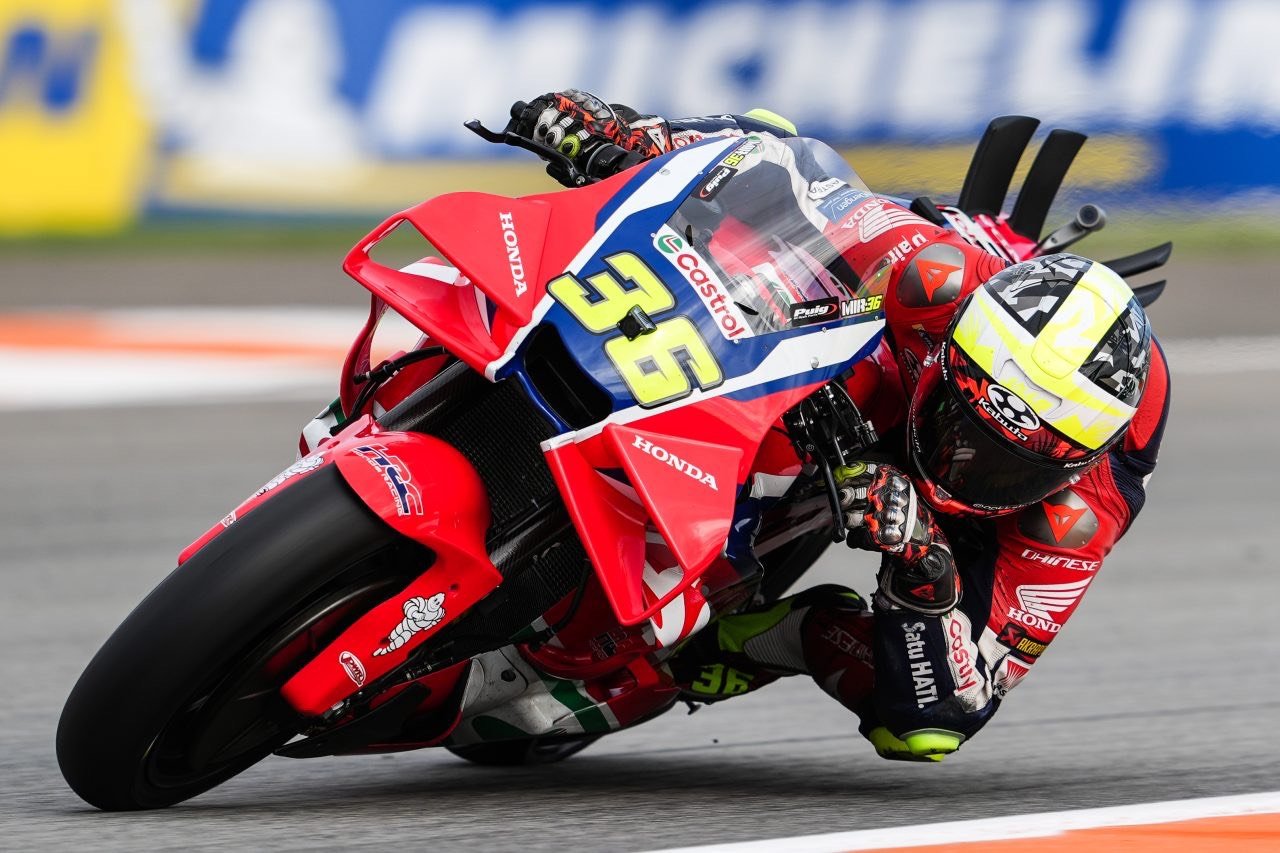 “โยฮันน์ ซาร์โก” นักแข่งจอมเก๋าชาวฝรั่งเศสจาก ฮอนด้า แอลซีอาร์ ไล่บดคู่แข่งสุดมันส์ก่อนพารถแข่ง Honda RC213V เข้าป้ายอันดับ 10 ในรอบ สปรินต์เรซ ของศึก โมโตจีพี 2025 สนามสุดท้าย รายการ บาเลนเซีย กรังด์ปรีซ์ ขณะ “ก้อง” สมเกียรติ จันทรา นักบิดชาวไทย ออกตัวกริด 24 ขยับเข้าป้ายเป็นคันที่ 21 เมื่อวันเสาร์ที่ 15 พฤศจิกายนที่ผ่านมา ที่ เซอร์กิต ริคาร์โด ตอร์โม เมืองบาเลนเซีย ประเทศสเปน