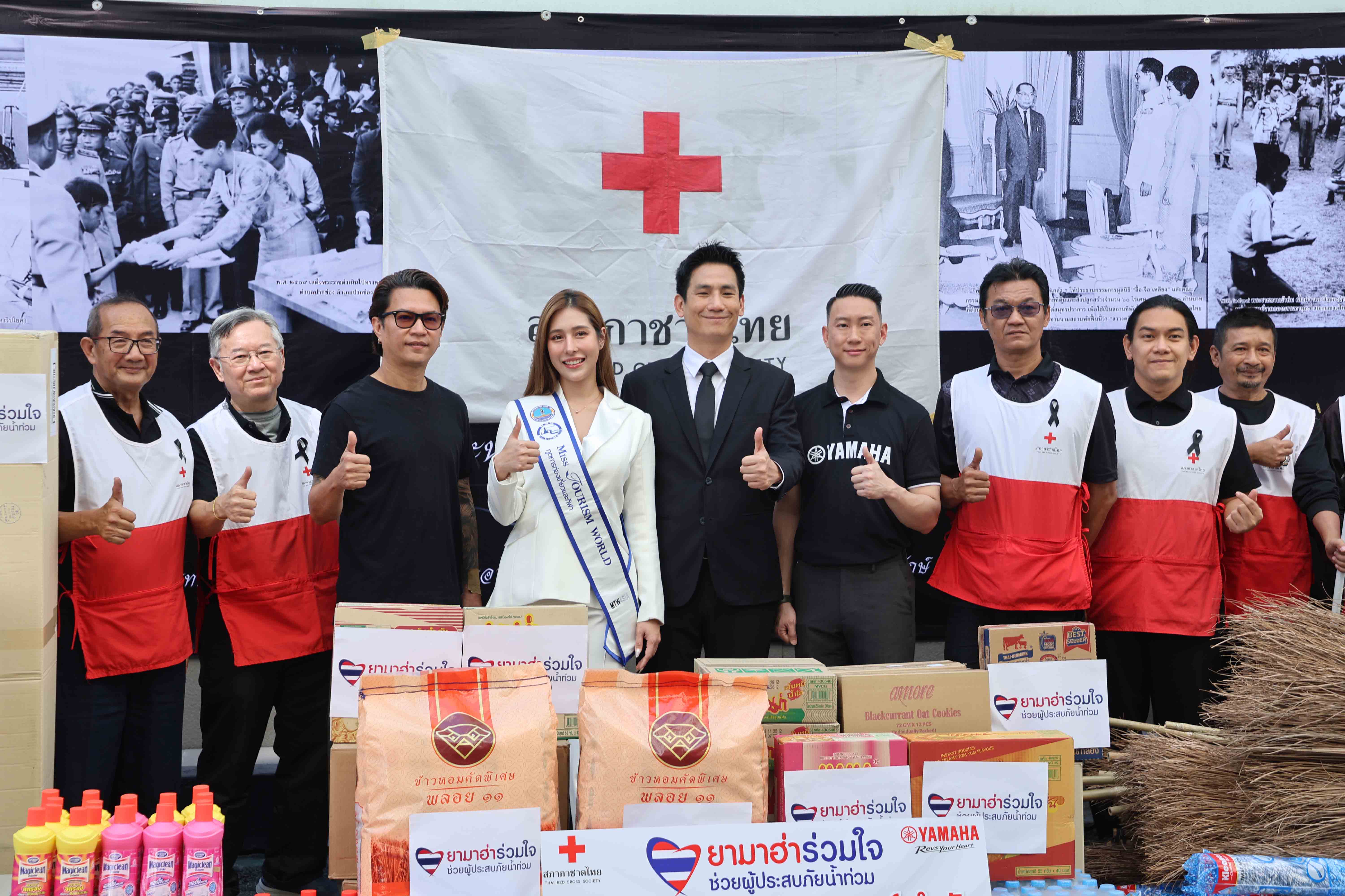 นายอุกฤษณ์ ภาควิวรรธ รองผู้จัดการใหญ่ด้านวางแผนการค้าและการตลาด, นายจิรภัทร สายเพชร ผู้จัดการทั่วไปฝ่ายสื่อสารการตลาด และส่งเสริมการตลาด พร้อมด้วยอินฟลูเอนเซอร์สาย Biker ชั้นนำ ได้แก่ คุณจอห์น อริยะพงษ์ – จอห์น ไรเดอร์, คุณแพร ทวินันท์ และคุณเบนซ์ อัครกิตติ์ – เบนซ์เรซซิ่ง ร่วมส่งมอบอาหาร สิ่งของจำเป็น และอุปกรณ์ทำความสะอาดให้แก่สภากาชาดไทย ในโครงการ “ยามาฮ่าร่วมใจ ช่วยผู้ประสบภัยน้ำท่วม” โดยได้รับเกียรติจากนายแพทย์พินิจ กุลละวณิชย์ ผู้ช่วยเลขาธิการสภากาชาดไทย และ นางสุนันทา ศรอนุสิน ผู้อำนวยการสำนักงานยุวกาชาด ร่วมรับมอบ เพื่อส่งต่อไปยังพี่น้องชาวใต้ที่ได้รับผลกระทบจากอุทกภัยน้ำท่วม 2568
