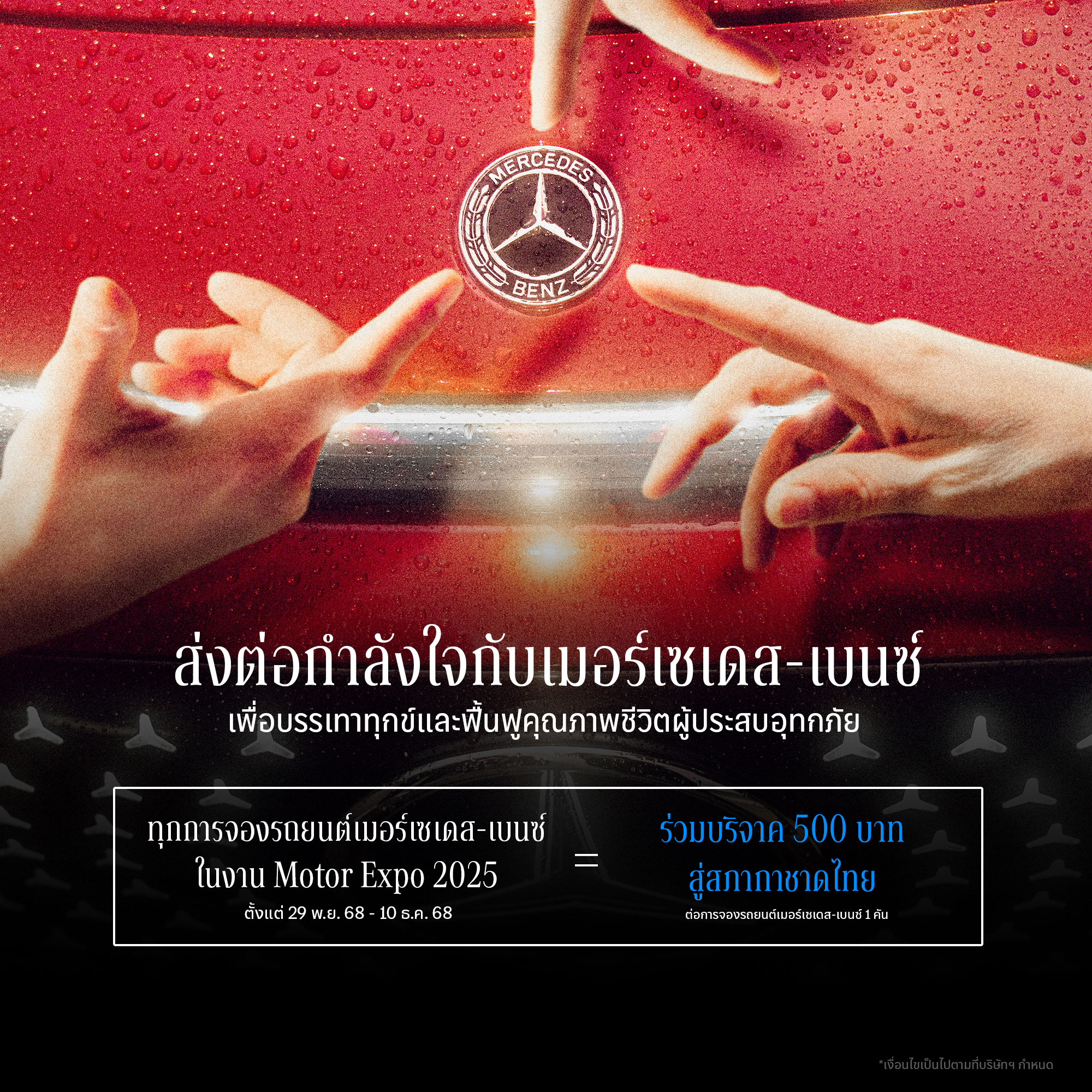 เมอร์เซเดส-เบนซ์ ประเทศไทย จะร่วมส่งมอบเงินบริจาคทั้งหมด ในวันที่ 17 ธันวาคม 2568