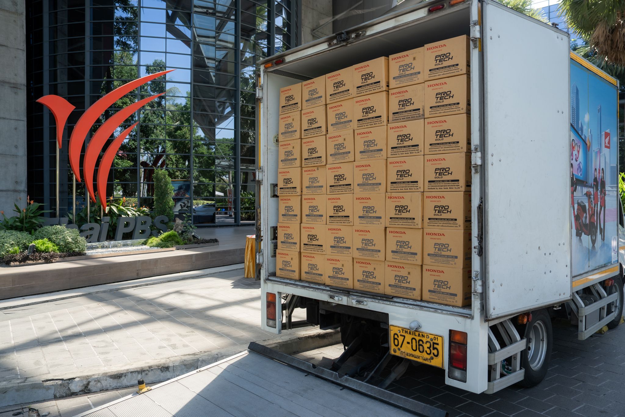 เมื่อวันที่ 4 ธันวาคม 2568 บริษัท ไทยฮอนด้า จำกัด ผู้ผลิตและจัดจำหน่ายรถจักรยานยนต์ และเครื่องยนต์อเนกประสงค์ฮอนด้าในประเทศไทย ร่วมกับ ไทยพีบีเอส ส่งมอบน้ำมันเครื่อง Honda Protech Gold สำหรับรถจักรยานยนต์ จำนวน 2,400 ขวด มูลค่ารวม 258,000 บาท เพื่อนำไปส่งมอบให้ศูนย์ซ่อมสร้างเพื่อชุมชน หรือ Fix it Center ที่สำนักงานคณะกรรมการอาชีวศึกษา วิทยาลัยเทคนิคหาดใหญ่ ที่จัดตั้งขึ้นเพื่อซ่อมรถจักรยานยนต์ และเครื่องใช้ไฟฟ้าที่ได้รับความเสียหายจากเหตุการณ์น้ำท่วมที่ภาคใต้ โดยไม่คิดค่าใช้จ่าย