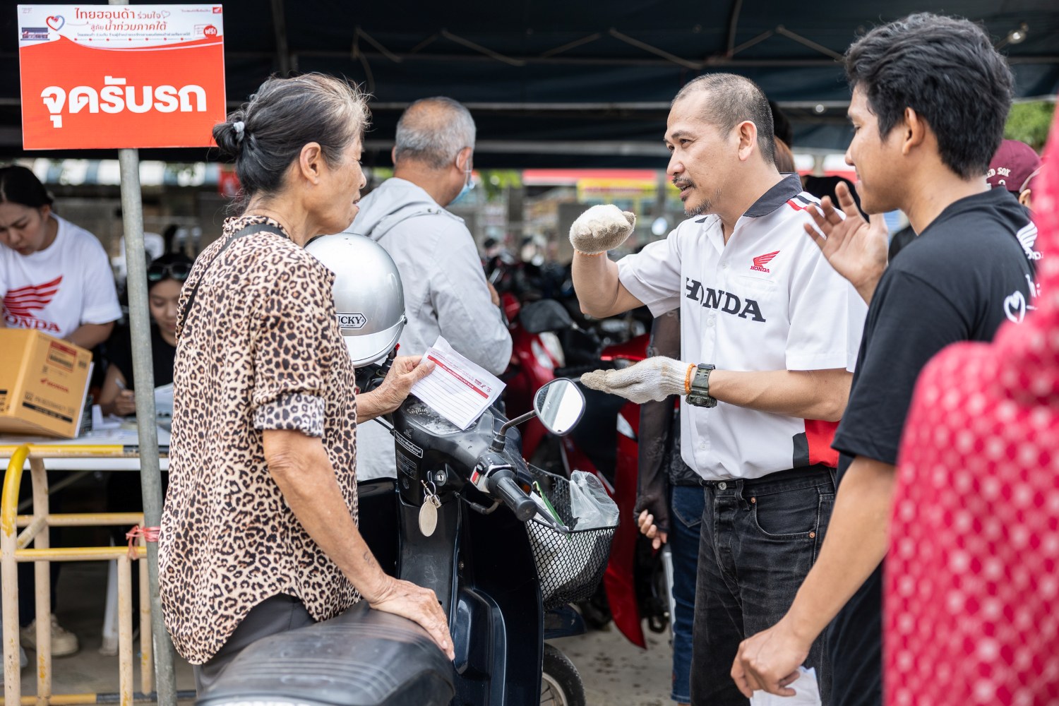 นอกจากนี้ ไทยฮอนด้ายังได้ช่วยเหลือด้านการฟื้นฟูยานพาหนะ ด้วยการระดม ทีมช่างอาสาสมัครจากศูนย์บริการฮอนด้าทั่วประเทศกว่า 200 คน ลงพื้นที่ตั้ง จุดให้บริการช่วยเหลือซ่อมรถจักรยานยนต์ฟรี จำนวน 9 จุด ระหว่างวันที่ 8–14 ธันวาคม 2568 โดยตลอดระยะเวลา 7 วันของการให้บริการ สามารถช่วยซ่อมแซมรถจักรยานยนต์ของประชาชนได้รวมทั้งสิ้น 4,011 คัน ครอบคลุมทั้งกรณีความเสียหายเล็กน้อยและกรณีความเสียหายหนัก เพื่อให้รถจักรยานยนต์สามารถกลับมาใช้งานได้อย่างปลอดภัย และสนับสนุนการเดินทางและการประกอบอาชีพในช่วงฟื้นฟูหลังอุทกภัย