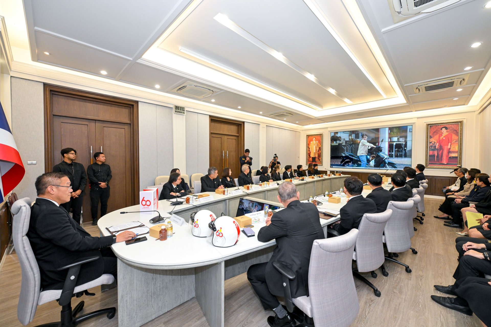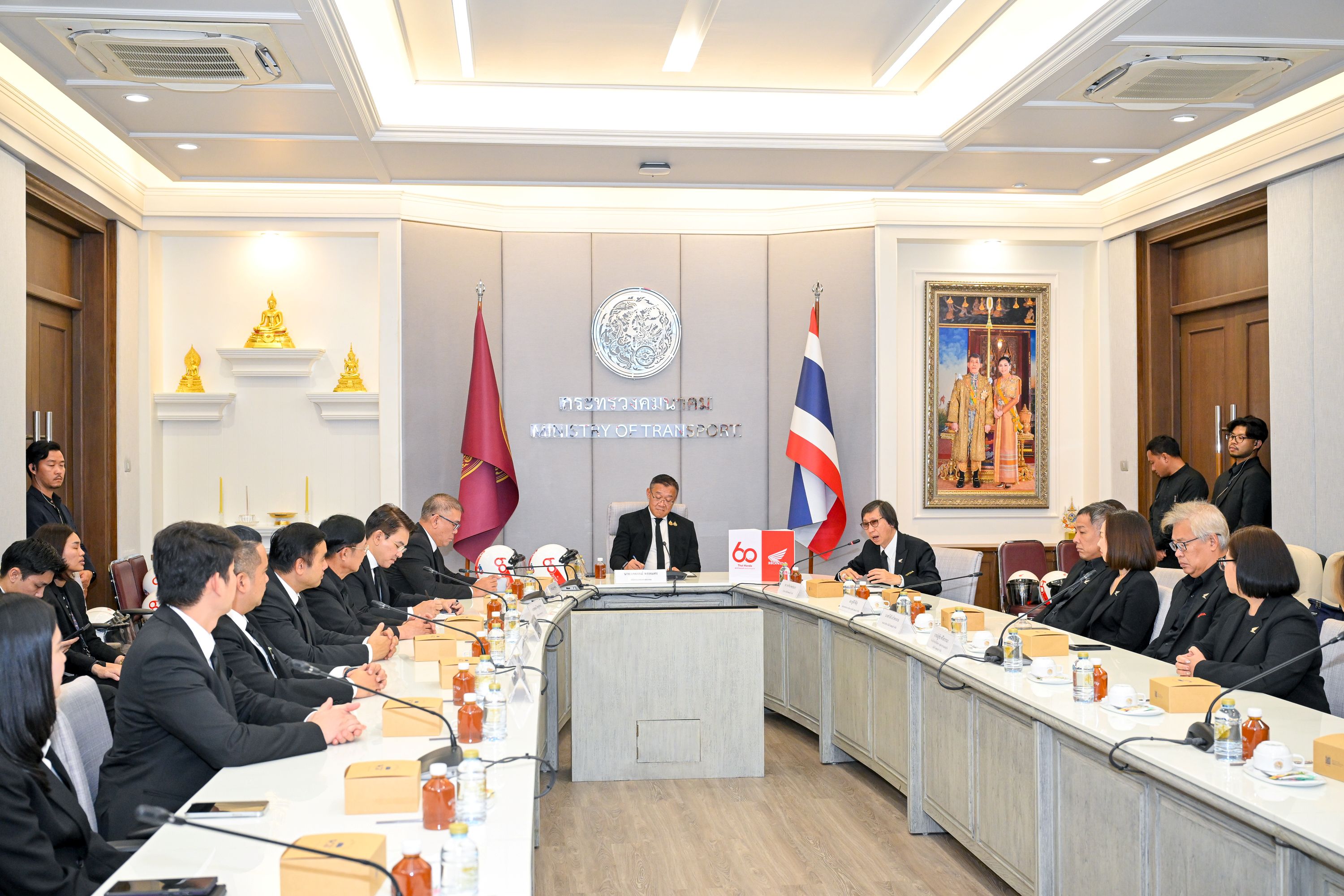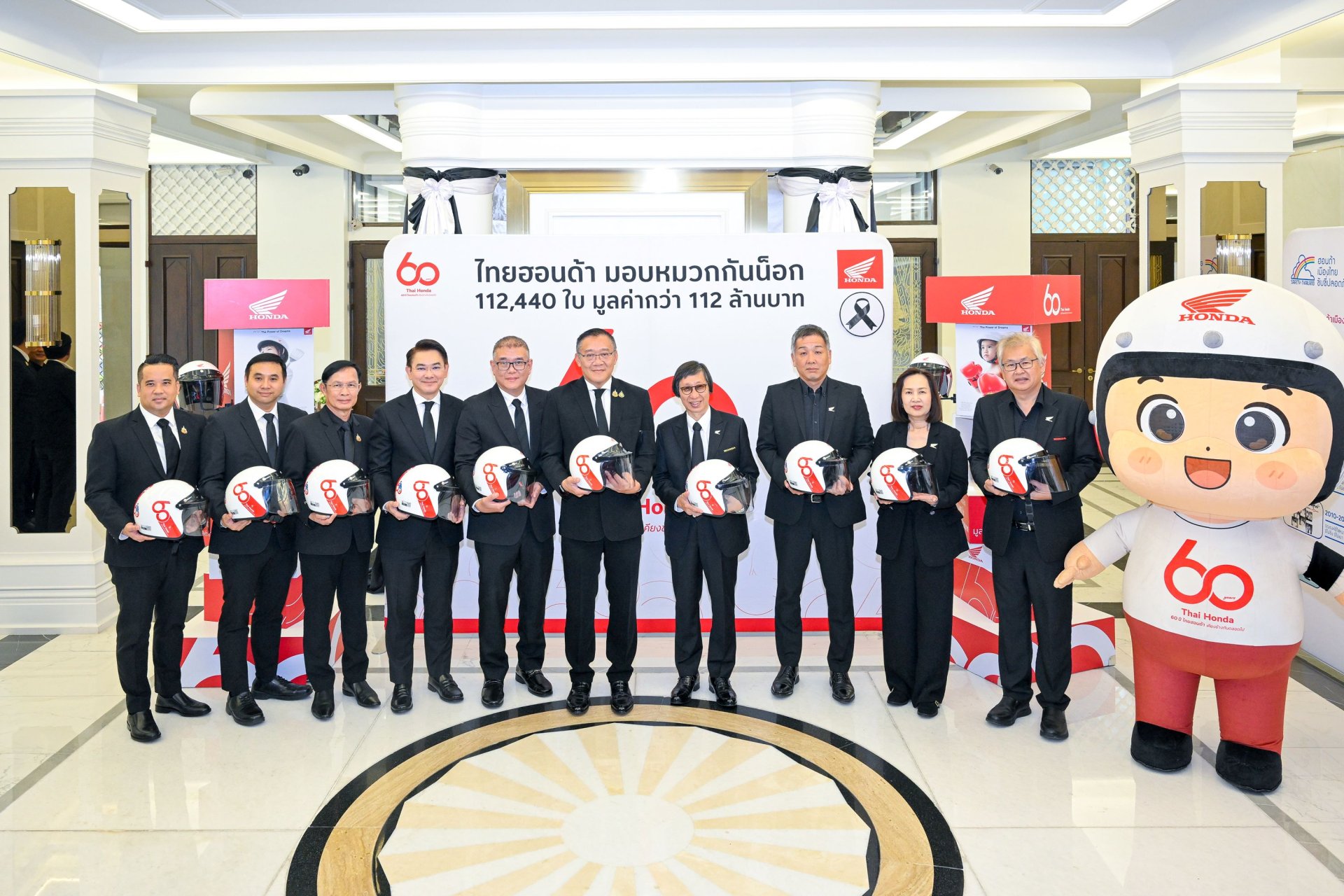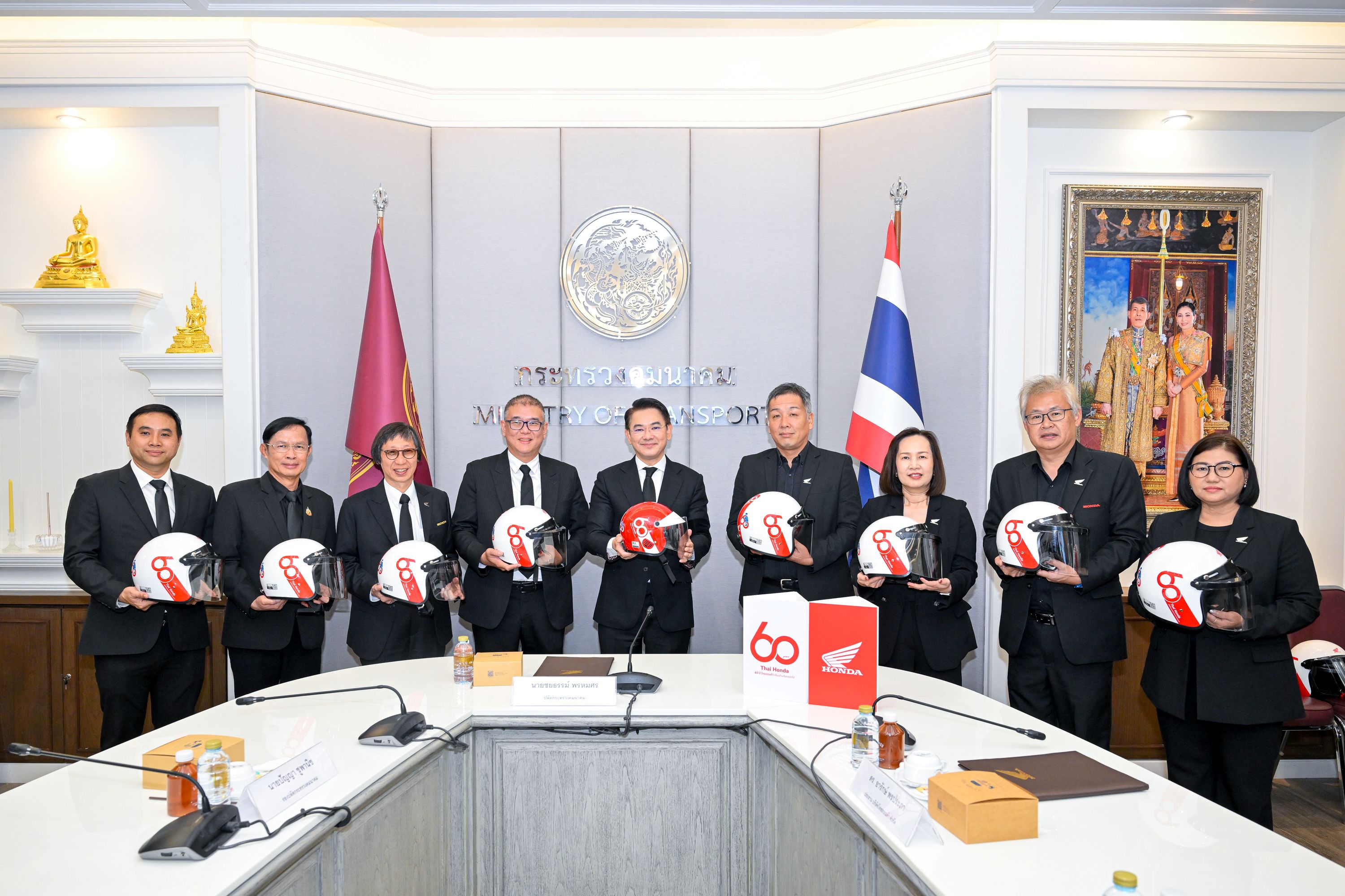 มร.ยูอิจิ ชิมิซุ ประธานกรรมการบริหาร บริษัท ไทยฮอนด้า จำกัด กล่าวว่า “เนื่องในโอกาสครบรอบ 60 ปีของไทยฮอนด้า เราอยากแสดงความขอบคุณและตอบแทนสังคมไทย ภายใต้แนวคิด ‘60 ปี ไทยฮอนด้า ขับขี่ปลอดภัย เพื่อสังคมไทยที่ยั่งยืน’ ด้วยการส่งมอบหมวกนิรภัยจำนวน 60,000 ใบ มูลค่า 60 ล้านบาท ร่วมกับร้านผู้จำหน่ายฮอนด้าทั่วประเทศที่สมทบเพิ่มเติมอีก 52,440 ใบ รวมเป็น 112,440 ใบ มูลค่ากว่า 112 ล้านบาท ครอบคลุมทั้ง 77 จังหวัดทั่วประเทศ ทั้งนี้ยังได้มอบให้กับหน่วยงานภาครัฐ และหน่วยงานที่เกี่ยวข้อง เพื่อไปกระจายต่อให้กับประชาชนรวมถึงการส่งมอบให้กับ กระทรวงคมนาคมในครั้งนี้ด้วย ”