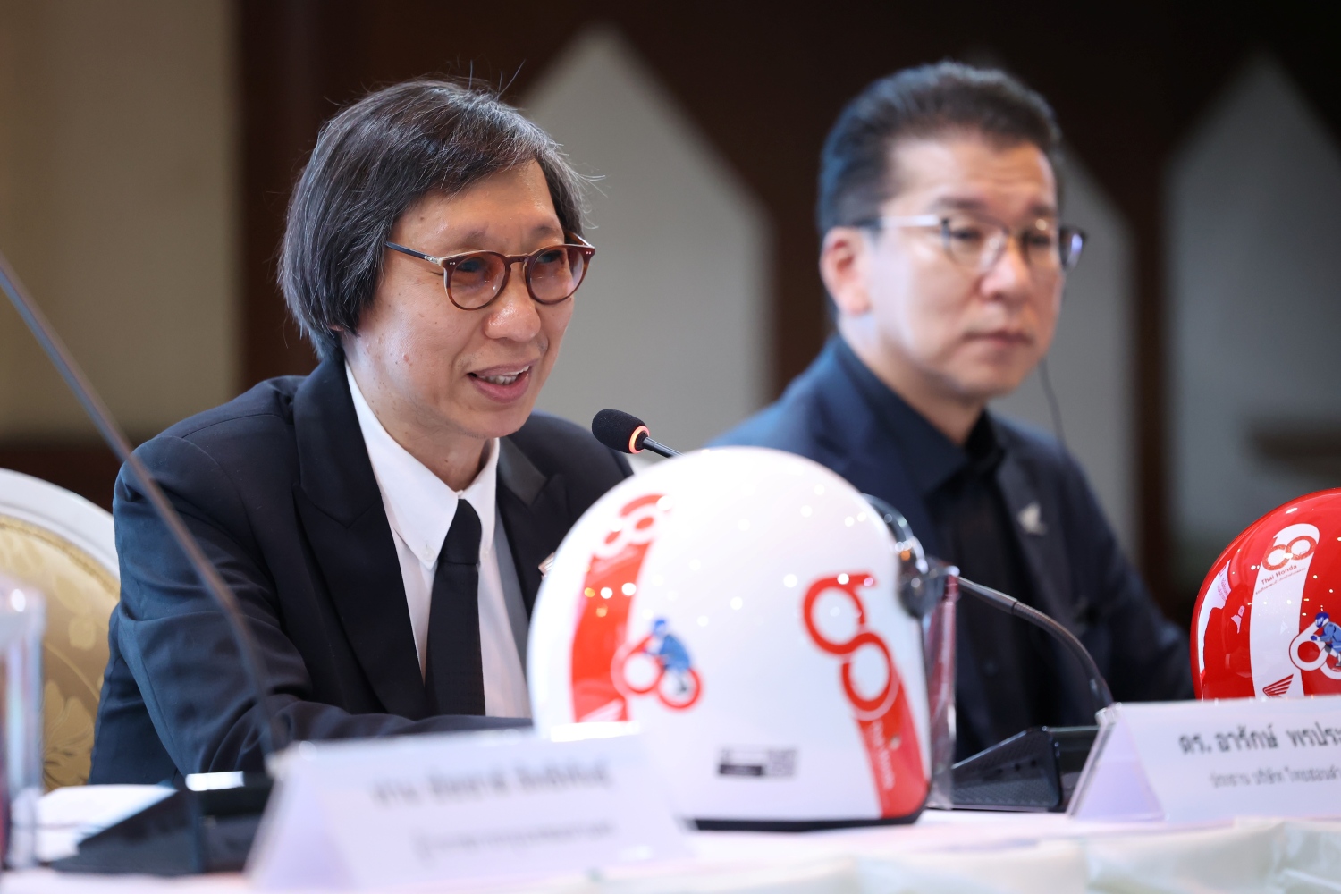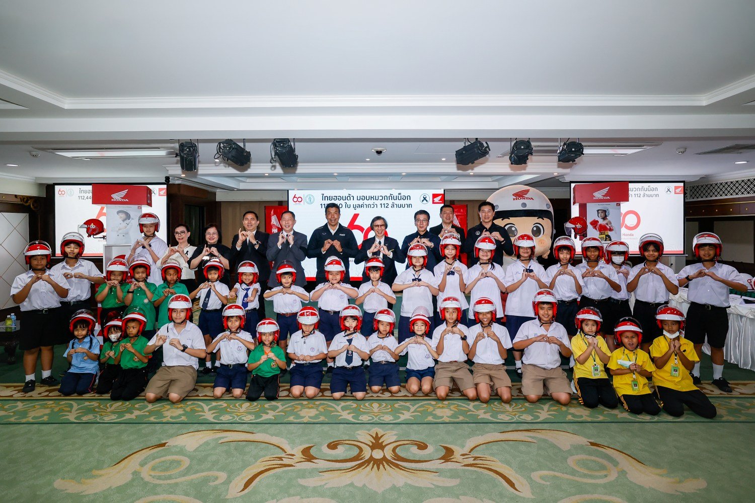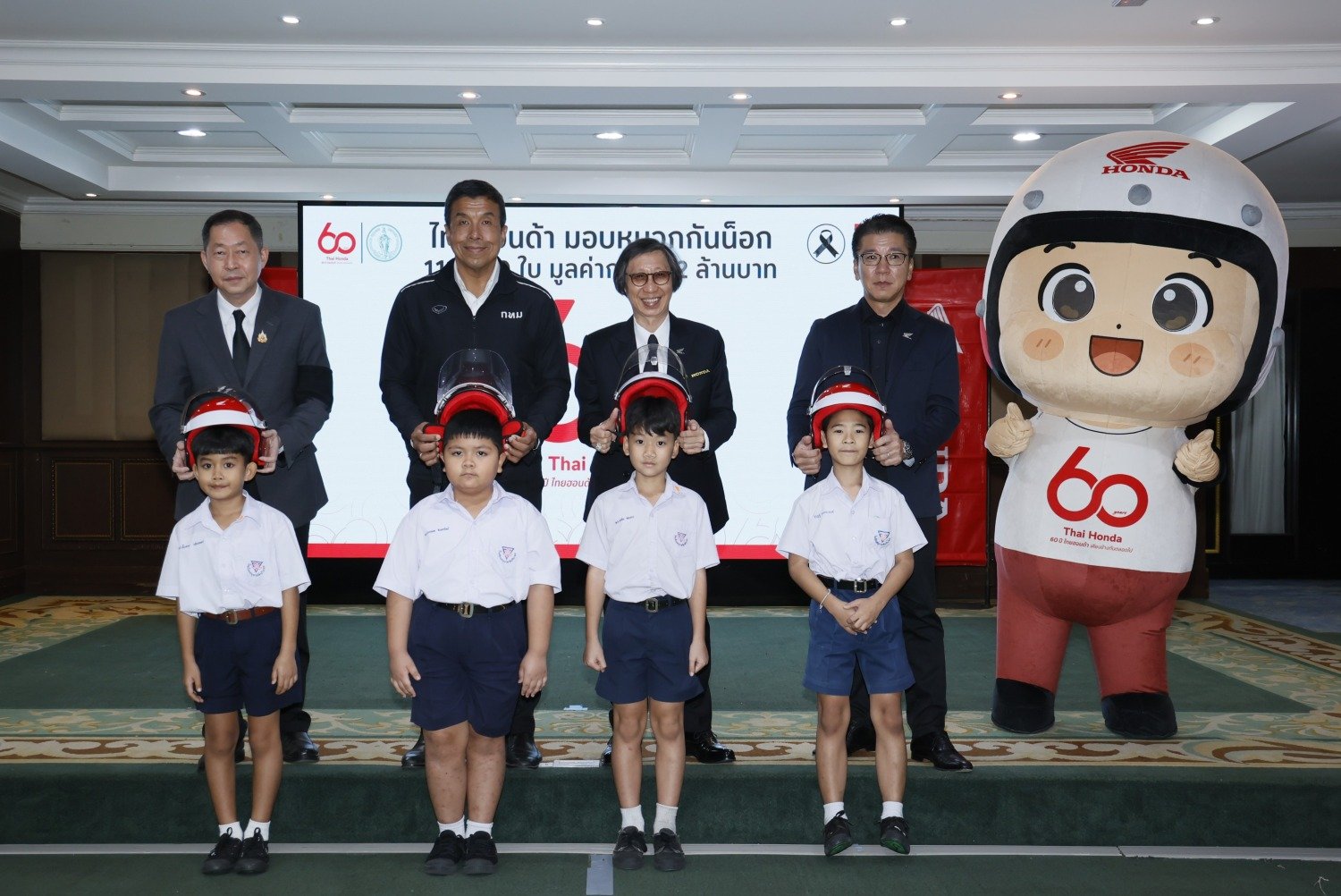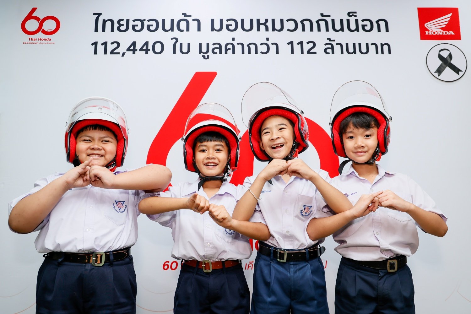 ด้าน นายฮายาโตะ เซกุจิ รองประธานกรรมการบริหาร บริษัท ไทยฮอนด้า จำกัด กล่าวว่า “เนื่องในโอกาสครบรอบ 60 ปี ไทยฮอนด้า บริษัทฯ ได้ดำเนินโครงการภายใต้แนวคิด ‘60 ปี ไทยฮอนด้า ขับขี่ปลอดภัย เพื่อสังคมไทยที่ยั่งยืน’ โดยตั้งใจส่งมอบหมวกกันน็อกจำนวน 60,000 ใบ และได้รับความร่วมมือจากผู้จำหน่ายรถจักรยานยนต์ฮอนด้าทั่วประเทศ ร่วมสมทบเพิ่มเติมอีก 52,440 ใบ ทำให้สามารถส่งมอบหมวกกันน็อกรวมทั้งสิ้น 112,440 ใบ ครอบคลุมครบทั้ง 77 จังหวัดทั่วประเทศ”