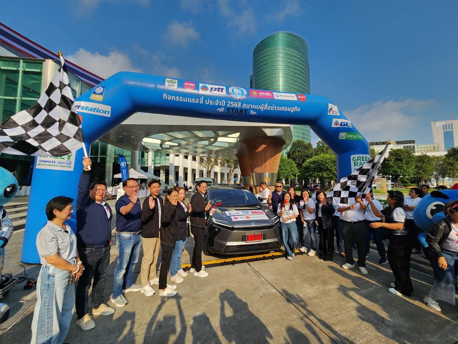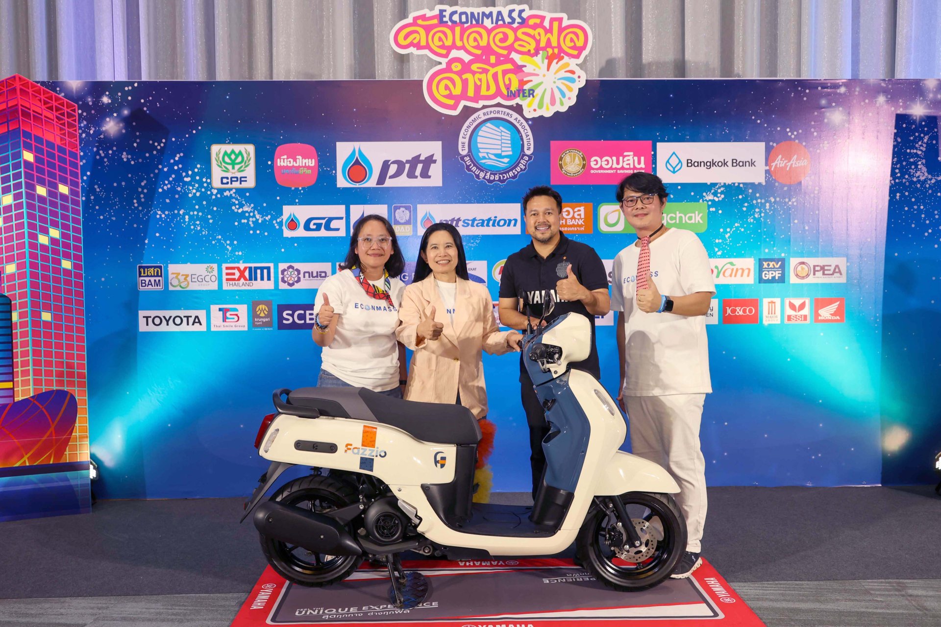 นายปิยะพงษ์ หวังใจสุข ผู้จัดการ 2 แผนกประชาสัมพันธ์ และอินฟลูเอนเซอร์ บริษัท ไทยยามาฮ่ามอเตอร์ จำกัด ถ่ายภาพการส่งมอบรถจักรยานยนต์ยามาฮ่า FAZZIO Hybrid Connected มูลค่า 52,500 บาท ให้กับนางสาวดวงพร อุดมทิพย์ นายกสมาคมผู้สื่อข่าวเศรษฐกิจ พร้อมด้วยคณะกรรมการสมาคม ร่วมกันรับมอบเพื่อเป็นรางวัลให้กับสื่อมวลชนที่เป็นสมาชิกสมาคมผู้สื่อข่าวเศรษฐกิจ ในงาน Greed Rally Econmass 2025