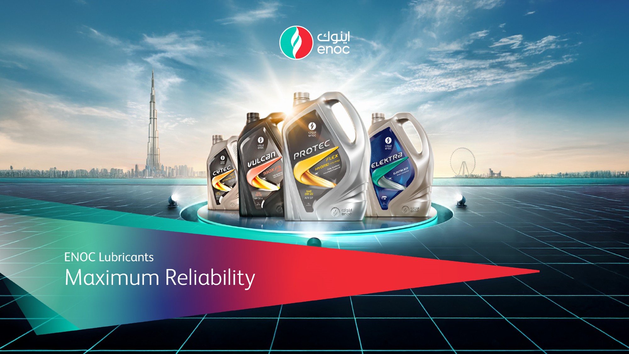 เกี่ยวกับ ENOC (Emirates National Oil Company) บริษัทพลังงานชั้นนำระดับโลกของรัฐบาลดูไบ ประเทศสหรัฐอาหรับเอมิเรตส์ (UAE) ก่อตั้งขึ้นในปี 1993 โดยดำเนินธุรกิจตั้งแต่การสำรวจผลิตน้ำมัน/ก๊าซ ไปจนถึงการตลาดน้ำมันเชื้อเพลิง และเริ่มขยายไปสู่ธุรกิจน้ำมันหล่อลื่นและน้ำมันเครื่อง (lubricants & engine oils) ทั่วโลก