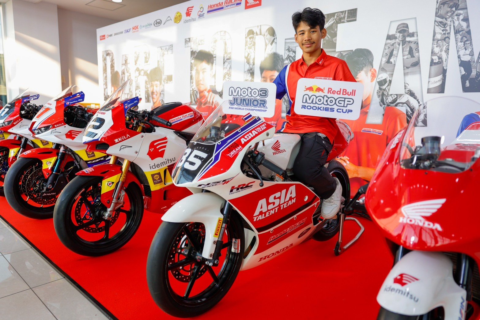 โดย “ฮอนด้า เรซ ทู เดอะ ดรีม” ยังคงไว้ซึ่งโครงสร้างที่ชัดเจนในแต่ระดับ ซึ่งในปีนี้ “อุ้ม” นพรุธพงษ์ บุญประเวศ หมายเลข 20 ดาวรุ่งเลือดใหม่ของทีมจะได้รับโอกาสลงแข่งขันในศึก อิเดมิตสึโมโตโฟร์ เอเชีย คัพ 2026 (Idemitsu Moto4 Asia Cup 2026) และ โมโตโฟร์ ยูโรเปียน คัพ 2026 (IMoto4 European Cup 2026) ควบคู่ทั้ง 2 รายการ