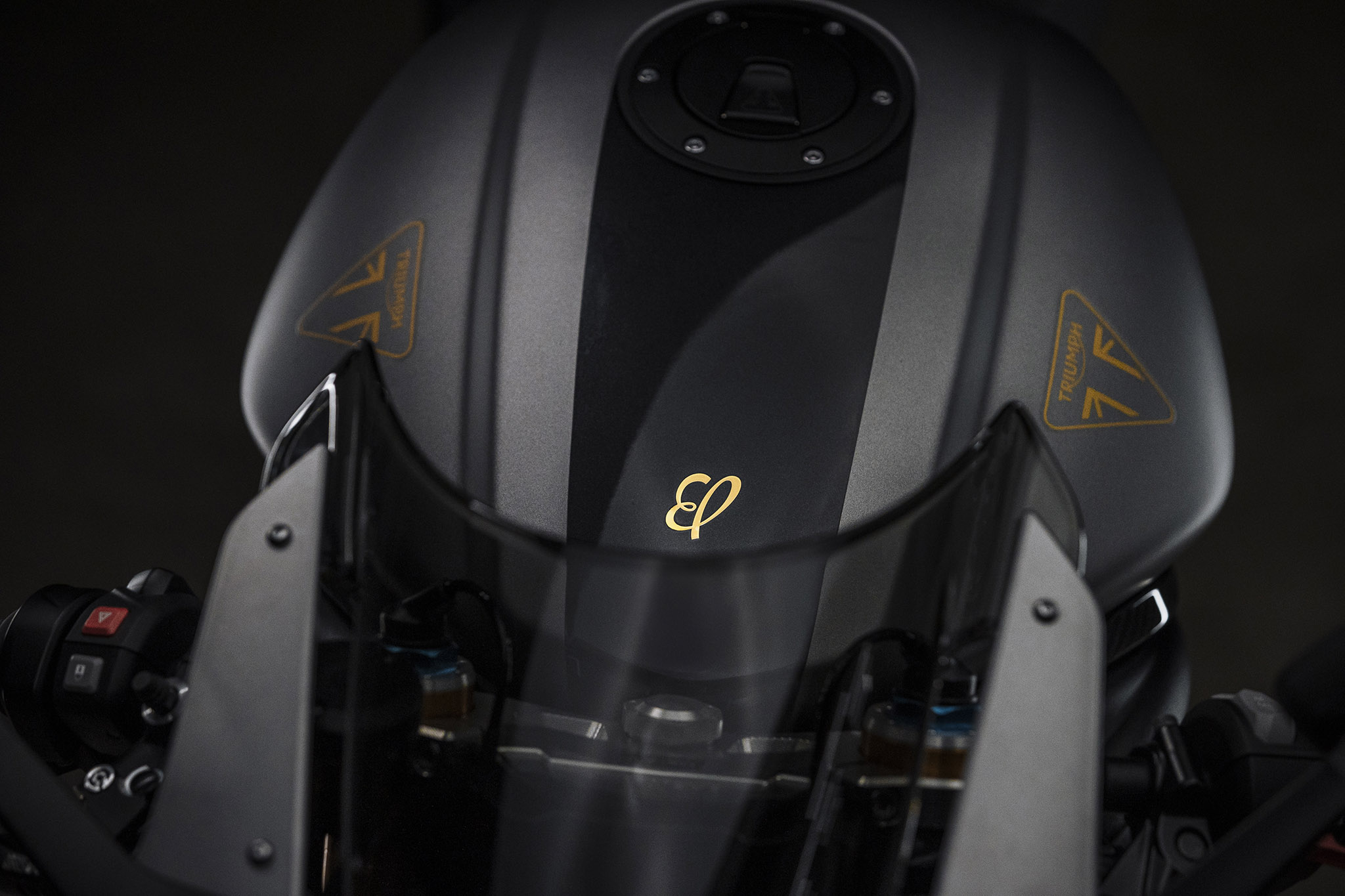 ความรักที่พิเศษ ไม่เหมือนใครสำหรับคนที่เชื่อว่าความรักที่แท้จริงควรมีเอกลักษณ์ ต้องรถจักรยานยนต์รุ่นพิเศษอย่าง Speed Triple 1200 RR Breitling Limited Edition คือสัญลักษณ์ของความโดดเด่นและตัวตนที่แตกต่าง ถ่ายทอดความพิเศษผ่านงานออกแบบและรายละเอียดเฉพาะตัว ผลิตเพียง 270 คันทั่วโลก โดดเด่นเหนือใครด้วยชุดสีพรีเมียมพร้อมลวดลายเส้นสีทองวาดด้วยมือ เบาะหนังหรูพร้อมตะเข็บคู่ พร้อมท่อไอเสีย Akrapovic สเปคสูง มาพร้อมโอกาสในการเป็นเจ้าของนาฬิการุ่นพิเศษ Chronomat B01 42 Triumph จาก Breitling ผลิตจากไทเทเนียมและทอง 18k พร้อมหน้าปัดสีเทาเข้มและสายหนังสีน้ำตาล เฉพาะผู้เป็นเจ้าของรถจักรยานยนต์รุ่นพิเศษนี้เท่านั้น