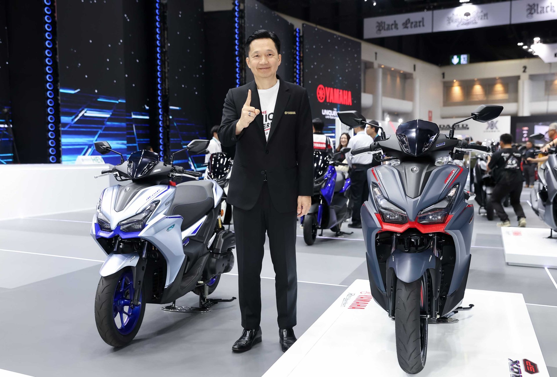 นายพงศธร เอื้อมงคลชัย ประธานกรรมการบริหาร และ มร.ฮิเดฮิโกะ ทาคากิ รองประธานกรรมการบริหาร พร้อมคณะผู้บริหารระดับสูง บริษัท ไทยยามาฮ่ามอเตอร์ จำกัด ถ่ายภาพร่วมกับ ดร.ปราจิน เอี่ยมลำเนา ประธานการจัดงาน นายจาตุรนต์ โกมลมิศร์ รองประธานการจัดงาน นายพีระพงศ์ เอี่ยมลำเนา ประธานเจ้าหน้าที่บริหาร และนายอโณทัย เอี่ยมลำเนา กรรมการบริหาร บริษัท กรังด์ปรีซ์ อินเตอร์เนชั่นแนล จำกัด (มหาชน) ในพิธีเปิดบูท “YAMAHA THE UNIQUEVERSE” อย่างเป็นทางการ ภายในงานบางกอก อินเตอร์เนชั่นแนล มอเตอร์โชว์ ครั้งที่ 47