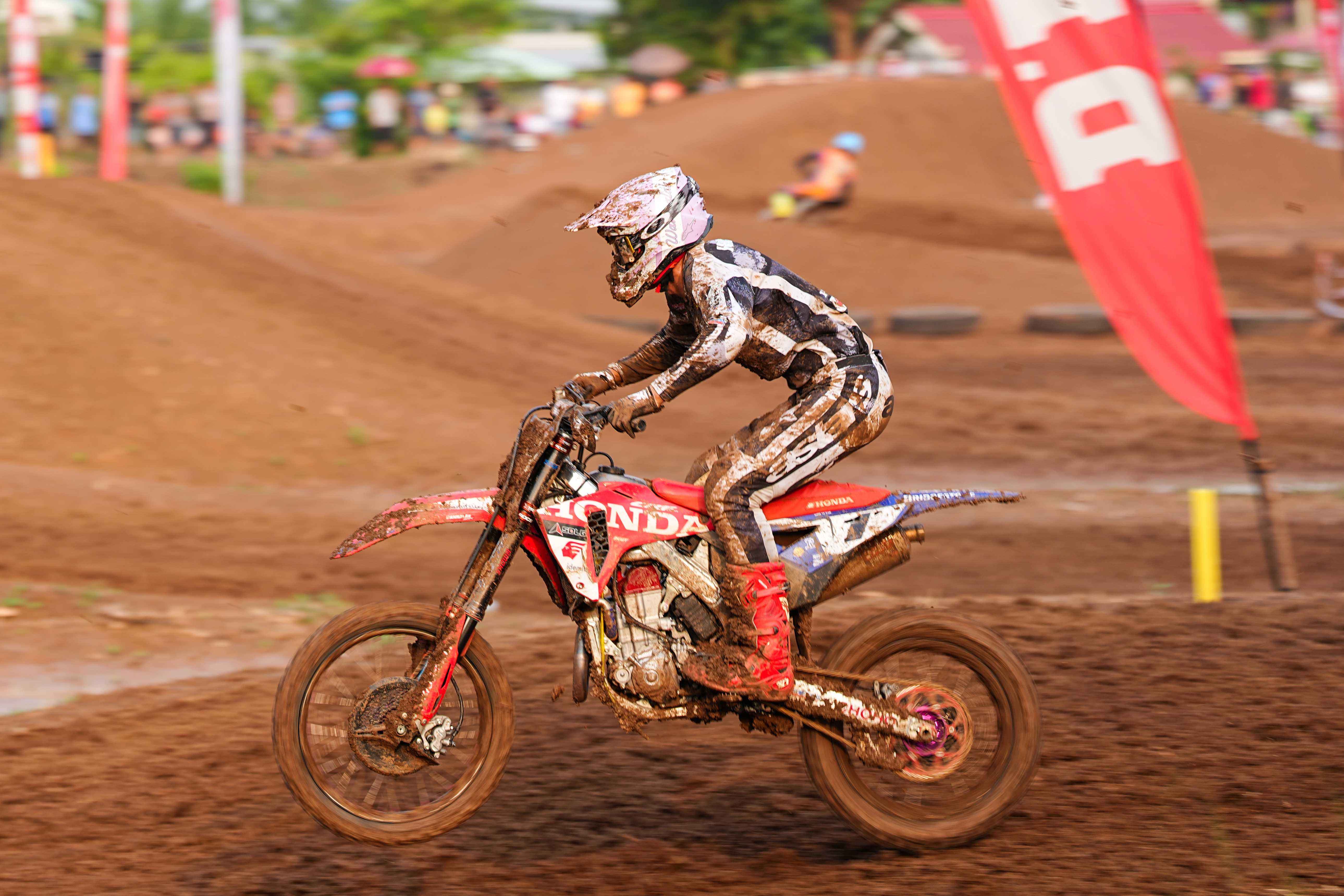 ทัพนักบิดฮอนด้าต้องพบกับความท้าทายอย่างมาก เมื่อลงซ้อมและควอลิฟายบนสภาพสนามแห้งสมบูรณ์ แต่เมื่อถึงเรซเดย์เงื่อนไขของสนามเปลี่ยนไปอย่างสิ้นเชิงจากฝนที่ตกลงมา ทำให้สนามกลายเป็นร่องโคลนที่ลึกและเหนียว ท้าทายสมรรถนะของรถแข่งและสภาพร่างกายของนักบิดอย่างมาก โดยผลงานในรอบควอลิฟาย“นีโม่” จิรัฎฐ์ วรรณลักษณ์ เจ้าของแชมป์ประเทศไทยรุ่น Premier MX-1 และรถแข่ง Honda CRF450R หมายเลข 1 สังกัดทีม Honda Racing Thailand Idemitsu Wannalak Motorsport ทำเวลาในรอบควอลิฟายเป็นอันดับที่ 1