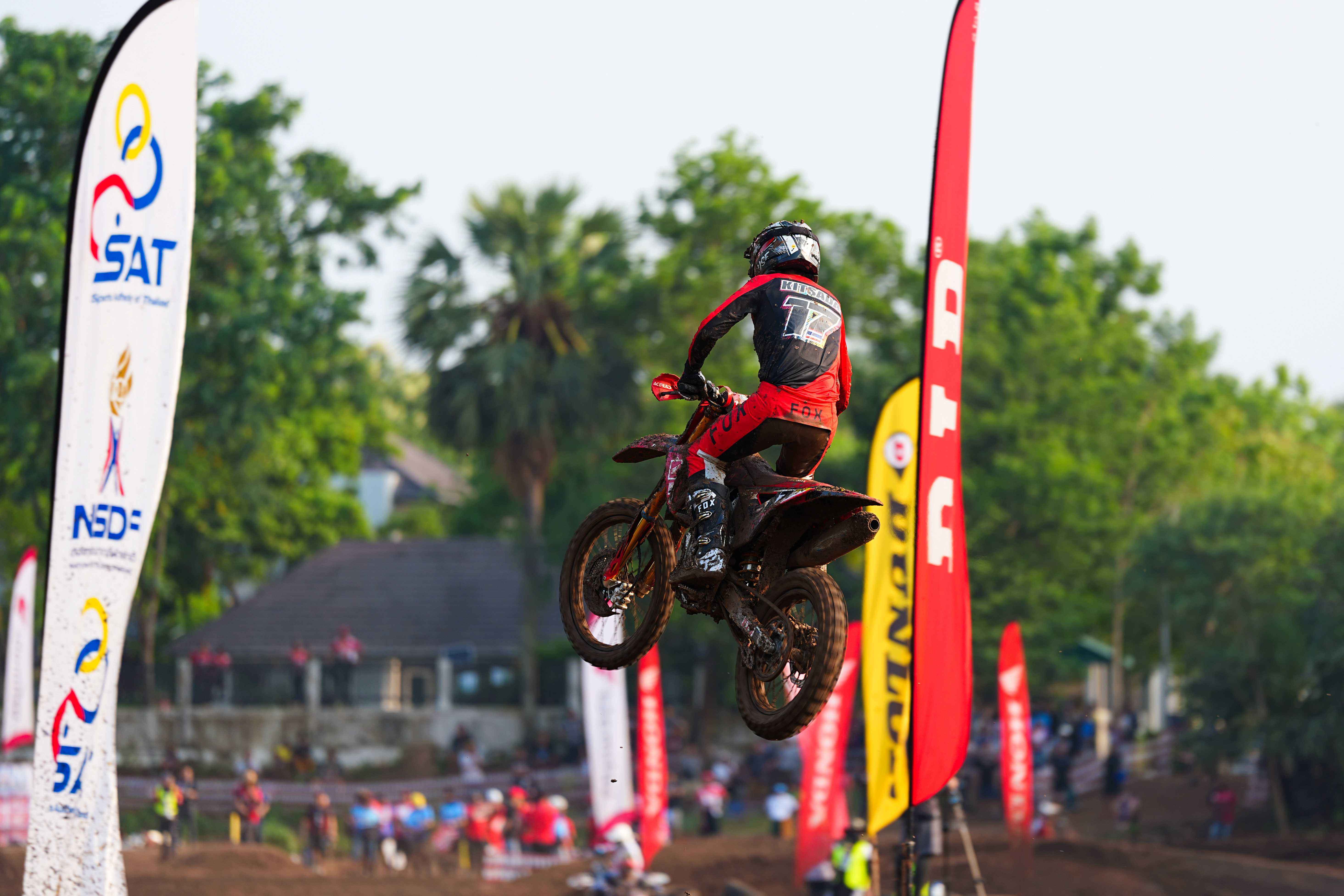 “ไตรตั้น” เตโชดม มีแสง หมายเลข 193 จากทีม Honda Racing Thailand Idemitsu WannalakMotorsport ทะยานรถแข่ง Honda CRF250R ระเบิดโคลนขึ้นโพเดียมในอันดับที่ 3 ขณะที่ “คิ้วท์” พันธกานต์ บุญชาลี หมายเลข 17 ทีม Honda Asia Bowin Idemitsu S Motor เข้าเส้นชัยมาเป็นอันดับที่ 5