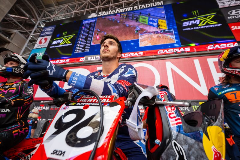 สุดยอดตัวแข่งทางฝุ่น Honda CRF450R ทำผลงานในระดับท็อปอย่างต่อเนื่องในศึก AMA Supercross 2026 (AMA SX 2026) สนามที่ 5 ที่สเตทฟาร์ม สเตเดี้ยม สหรัฐอเมริกา (State Farm Stadium, United States of America) ในเกรนเดล(Glendale) ประเทศสหรัฐอเมริกา ซึ่งดวลความเร็วกันเมื่อวันที่ 7 กุมภาพันธ์ 2569 ที่ผ่านมา ยอดนักแข่งฮอนด้า “ฮันเตอร์ ลอว์เรนซ์” กดโพเดียมได้อีกครั้ง และคว้าป้ายเบอร์สีแดงมาครองพร้อมบวกคะแนนสะสมขึ้นมานำเป็นอันดับที่ 1 ในตารางแชมป์เปี้ยนชิพได้สำเร็จ